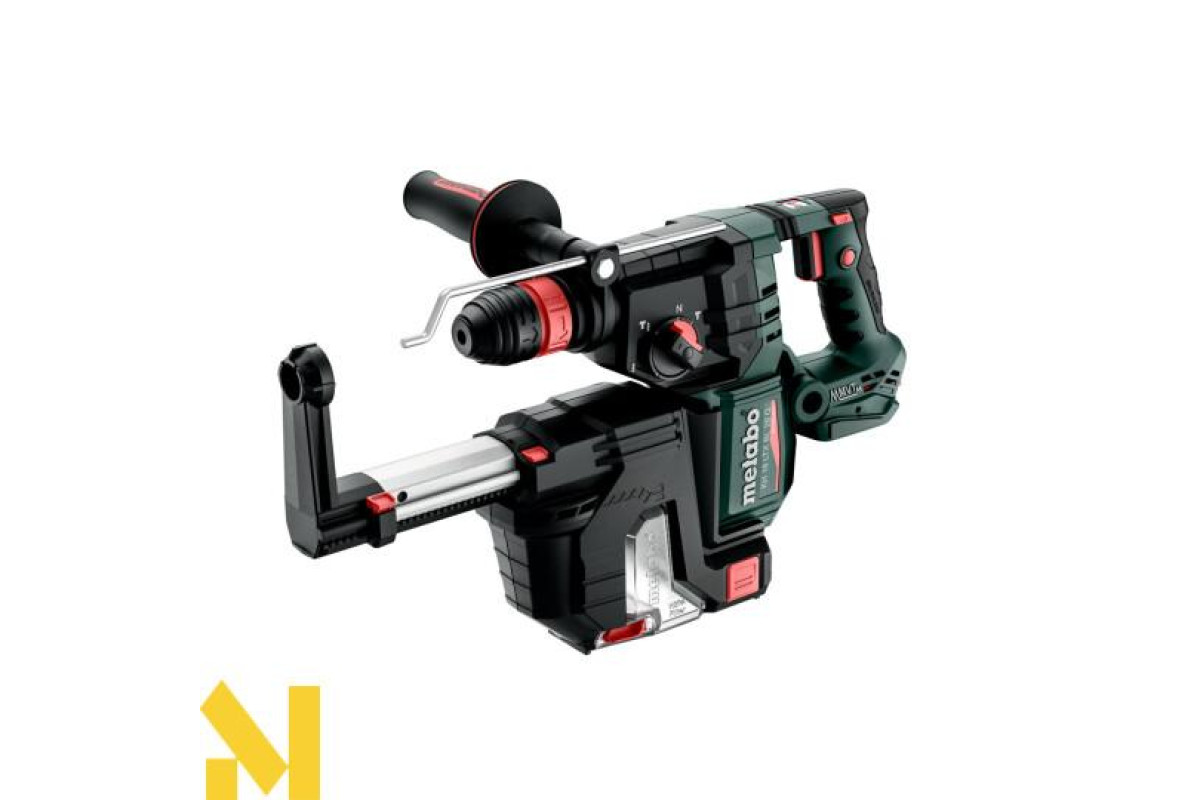 Каркас акумуляторного перфоратора Metabo KH 18 LTX BL 28 Q Set ISA поставляється без акумуляторів і зарядного пристрою, але системою видалення пилу ISA 28 і кейсом MetaBox. Це потужний та високопродуктивний перфоратор з максимальним діаметром свердління бетону 28 мм. Його чудовий баланс, потужність і набір допоміжних функцій, припаде до смаку багатьом майстрам.