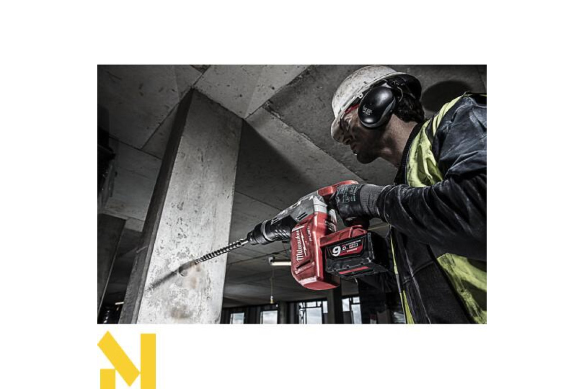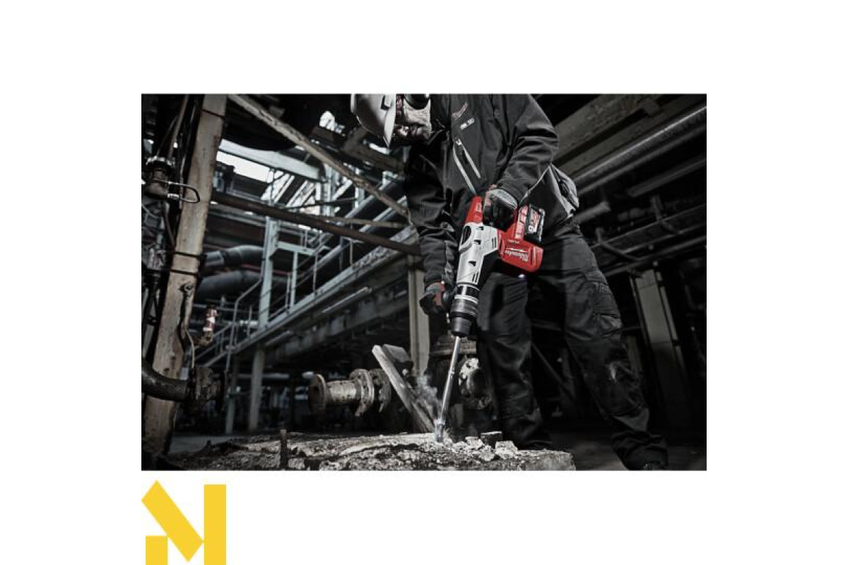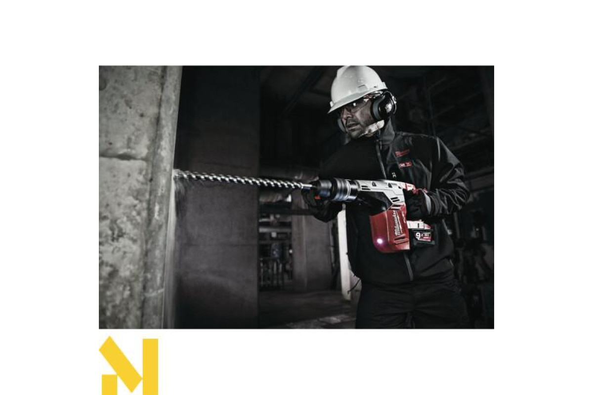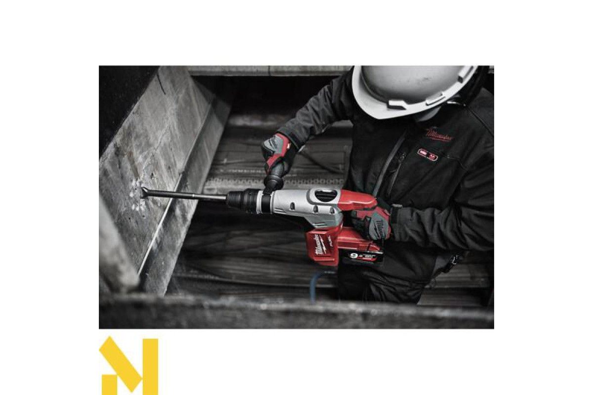Акумуляторний перфоратор Milwaukee M18 CHM-902C використовується під час будівельних і ремонтних робіт.