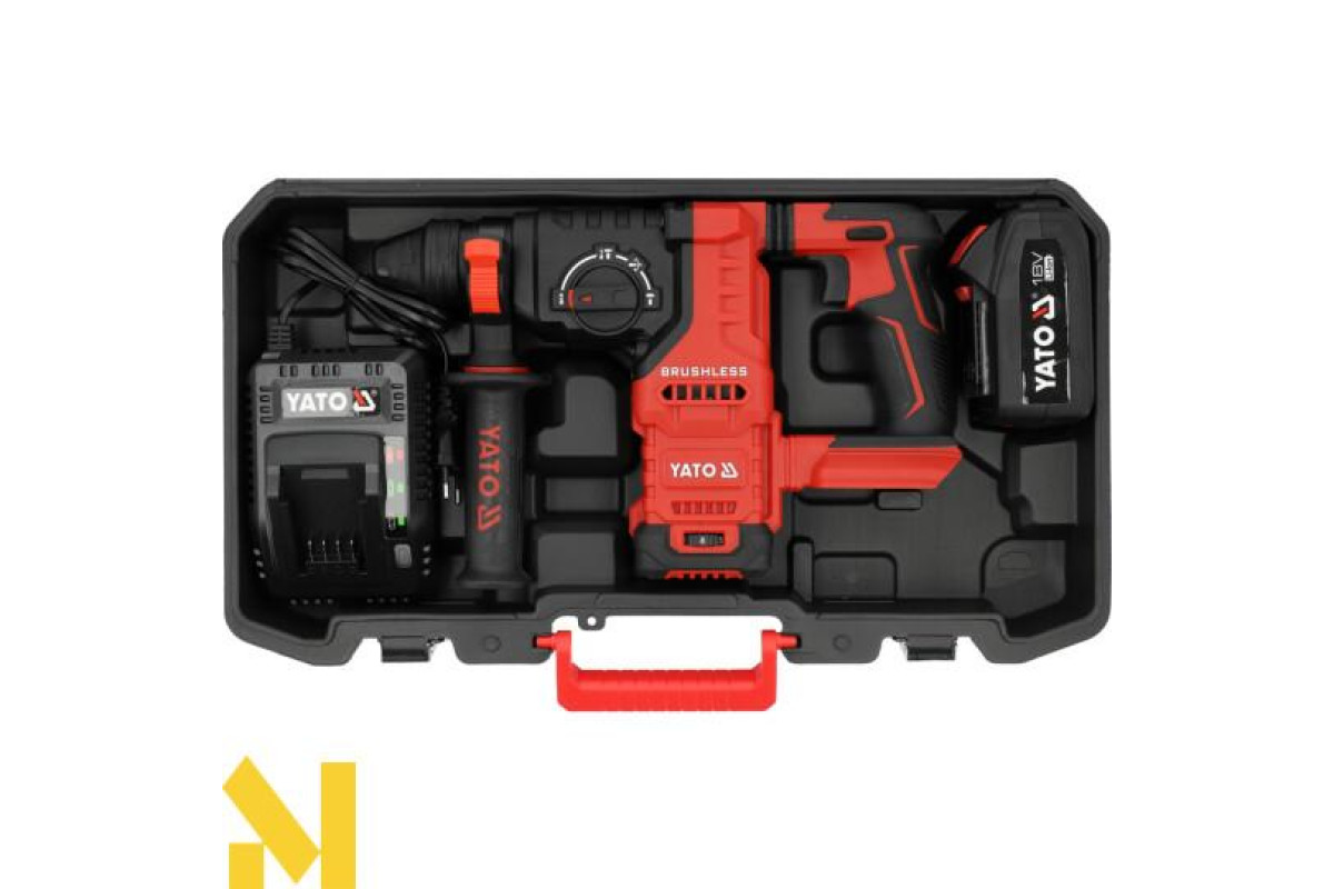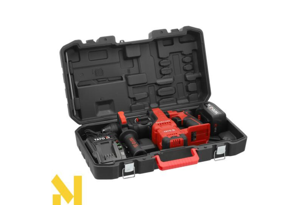 Акумуляторний ударний перфоратор YATO 18V – це потужний інструмент, призначений для інтенсивних монтажних та складання робіт. Завдяки енергії удару 2,8 Дж та патрону SDS Plus він ідеально підходить для свердління бетону, цегли та інших будівельних матеріалів, що потребують високої сили удару, а також твердого каменю (наприклад, граніту).