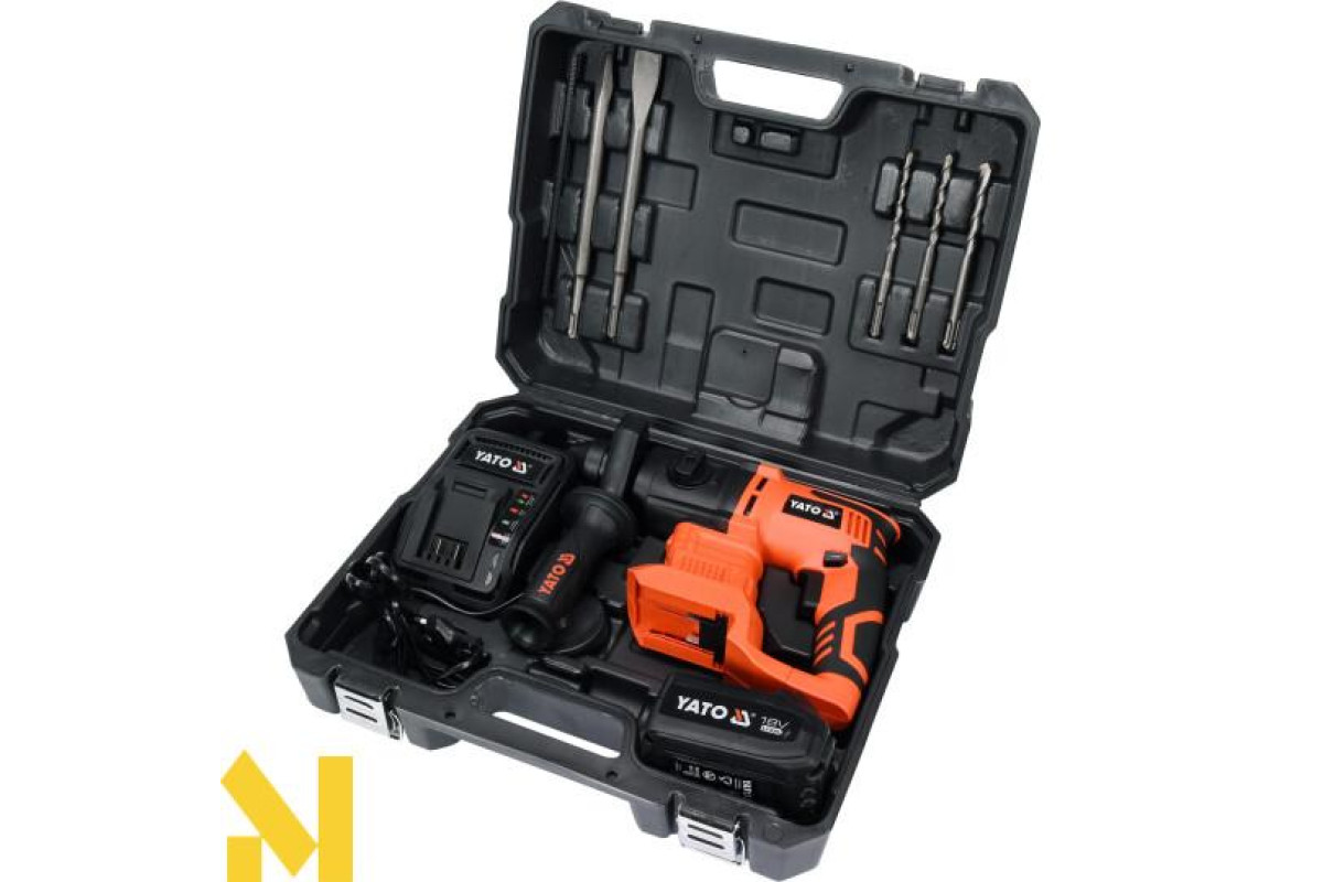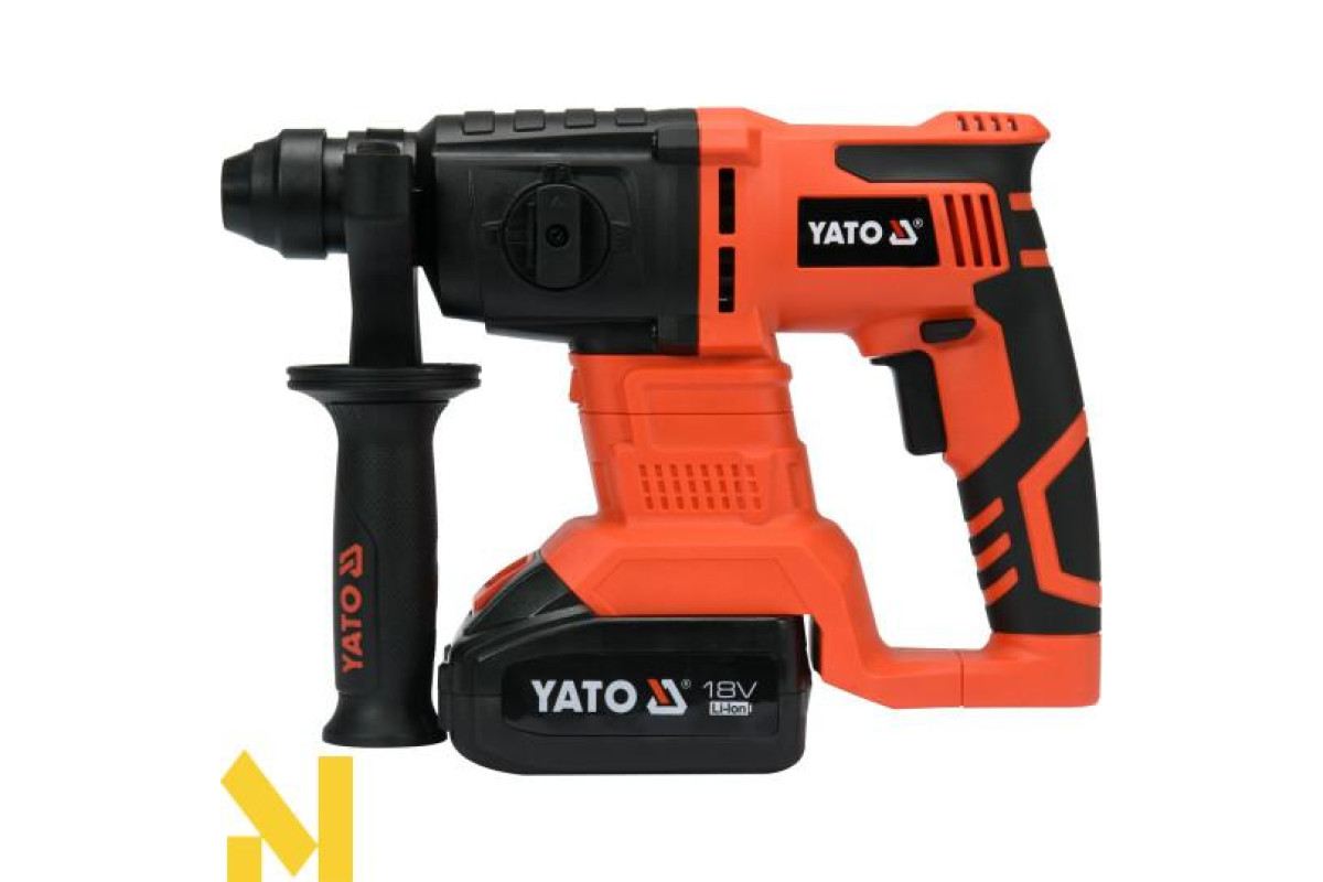 Легкий і ергономічний перфоратор YATO SDS-plus з функцією кування. Завдяки малій вазі, короткому корпусу і довговічного акумулятора, він ідеально підходить для монтажу натяжних стель і серійного свердління в бетоні. Рекомендується для монтажників, електриків.