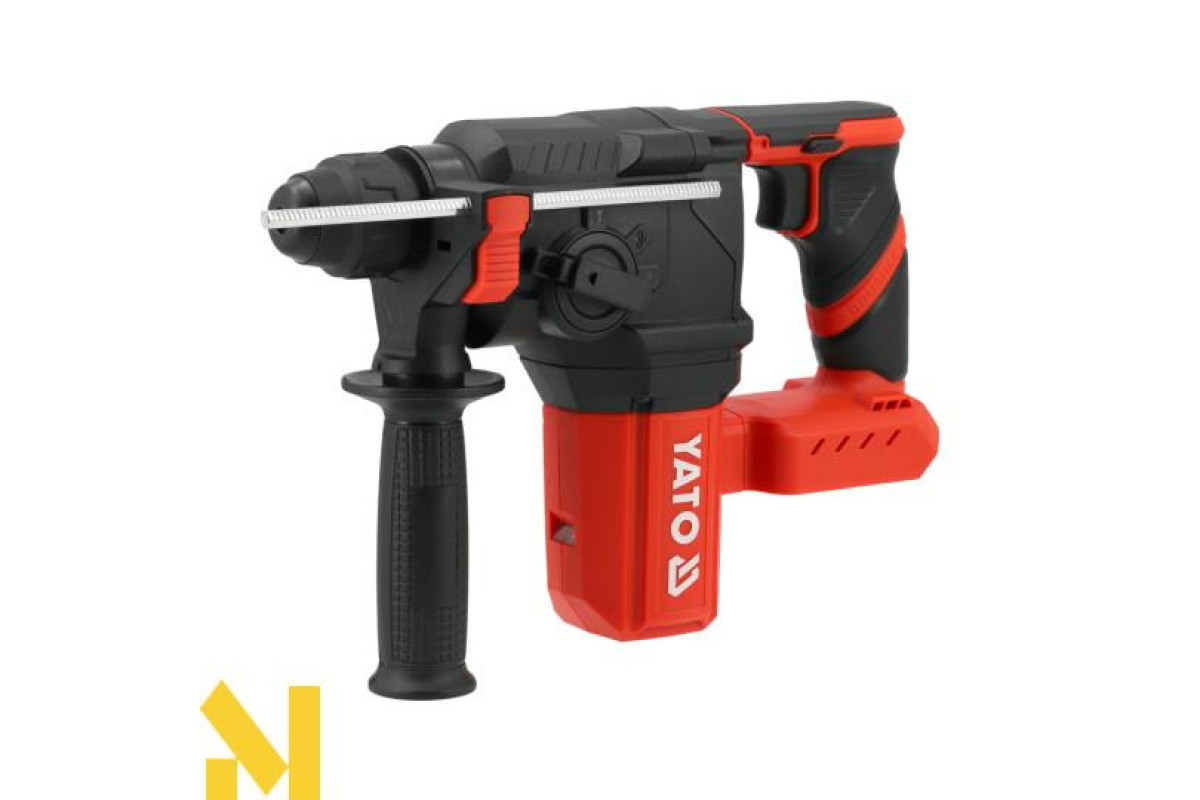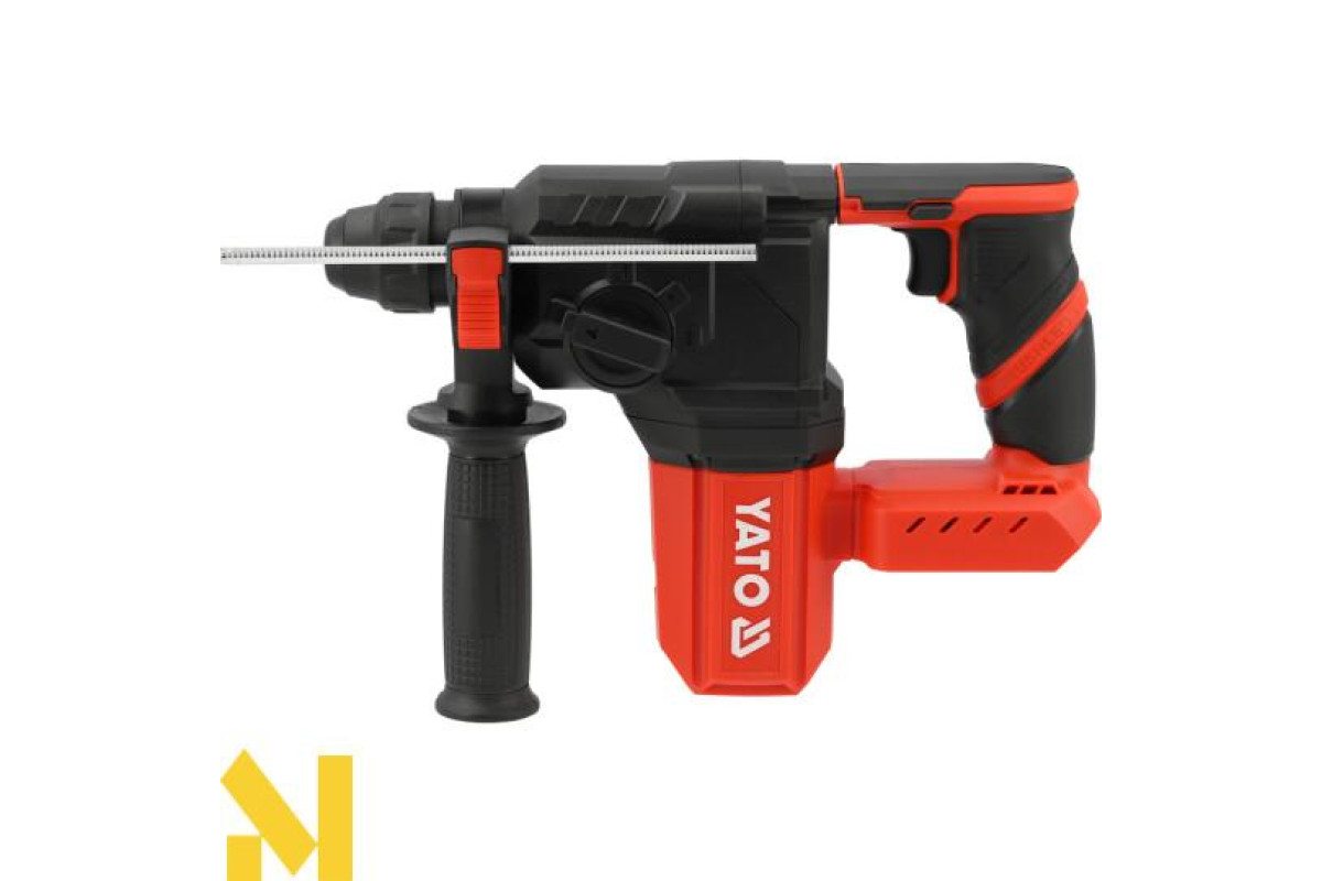 Конструкція з живленням від літій-іонного акумулятора 18 В пропонує повну портативність, тривалий час роботи, стабільність та безперервну роботу завдяки швидкій зарядці. Патрон SDS-plus дозволяє швидко змінювати насадки, а вбудоване світлодіодне освітлення полегшує роботу, особливо в шахтах комунальних служб та погано освітлених місцях. Комплект включає додаткову ручку та обмежувач глибини для підвищеного контролю та точності під час свердління. Його невелика вага робить роботу над головою або в незручних положеннях менш виснажливою.