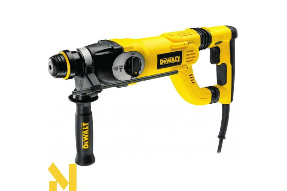 У трьохрежимному перфораторі DeWalt D25223K вмонтована запобіжна муфта. Завдяки цьому, мимовільний крутний удар, у випадку заклинювання бура, неможливий. Повний контроль над процесом гарантує електронне коректування швидкості. D-подібна рукоятка комфортна в експлуатації. Задня рукоятка прогумована, що значно зменшує вібрацію. Отже, оператор може працювати без утоми значно довше.
