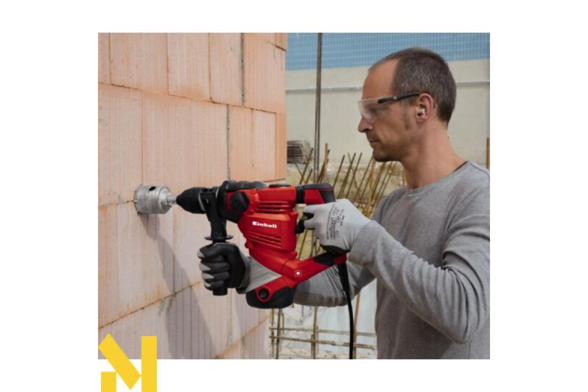 Новий перфоратор Einhell TC-RH 900 з SDS-Plus патроном призначений для свердління з биттям в бетоні, камені і цеглі. Також основне призначення перфоратора - це роботи, пов'язані з довбанням зубилом або долотом.