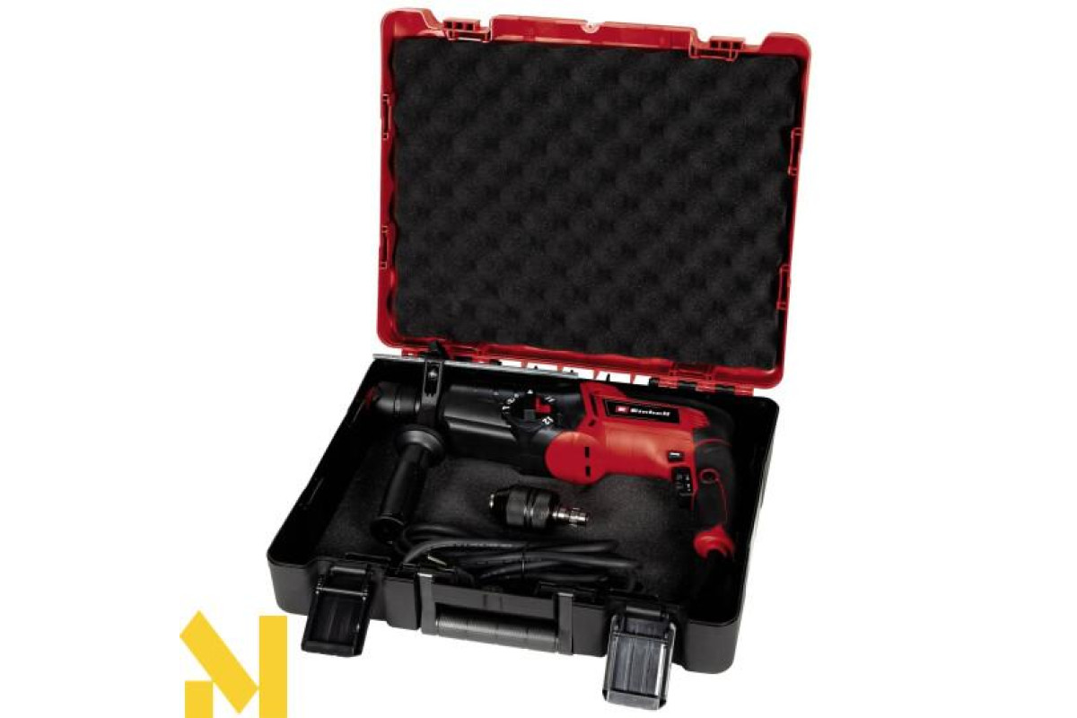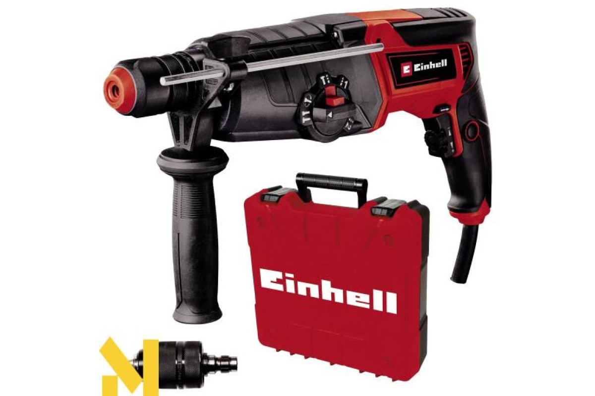Перфоратор Einhell TE-RH 950 5F - це багатофункціональний інструмент, який завжди під рукою в гаражі та майстерні і є незамінним помічником. Він поєднує в собі п'ять функцій в одній: свердління або свердління з ударом, довбання з фіксацією і без фіксації і, звичайно, загвинчування. Надійний перфоратор Einhell оптимально оснащений для виконання всіх цих функцій. Двошвидкісна коробка передач оптимально підходить для свердління і загвинчування в твердий матеріал: перша передача забезпечує високий крутний момент, а друга - рух на високій швидкості.