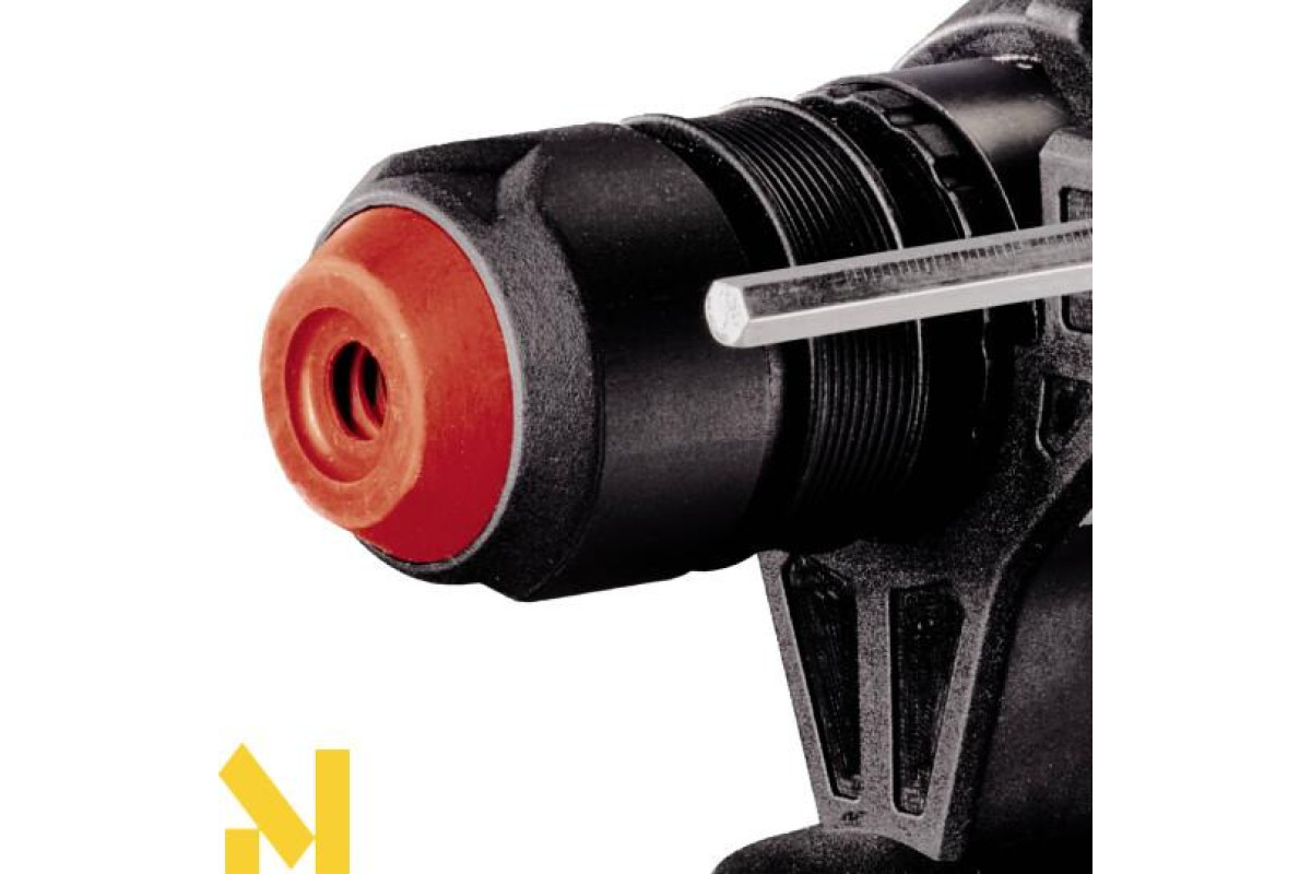 Зміна інструменту відбувається швидко і легко завдяки міцному тримачу інструменту SDS-Plus з напівавтоматичним керуванням. Перфоратор оснащений плавно регульованим обмежувачем глибини свердління з міцного металу. Додатковий патрон для свердління призначений для загвинчування і свердління. Поставляється в кейсі для транспортування і зберігання E-Box Basic.