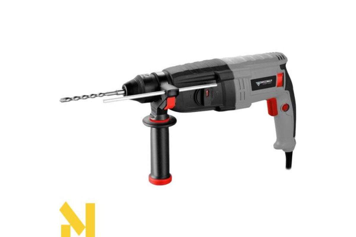 Пристрій з швидкозажимним типом патрона працює від мережі, має функцію реверсу. Його потужність становить потужність 850 Вт. Обороти холостого ходу - 0 - 1250 об / хв, енергія удару 2.8 Дж, максимальний діаметр свердління бетону 26 мм, стали - 13 мм, дерева - 30 мм. Завдяки компактним габаритам і невеликій вазі (2.7 кг), перфоратор зручно транспортувати.