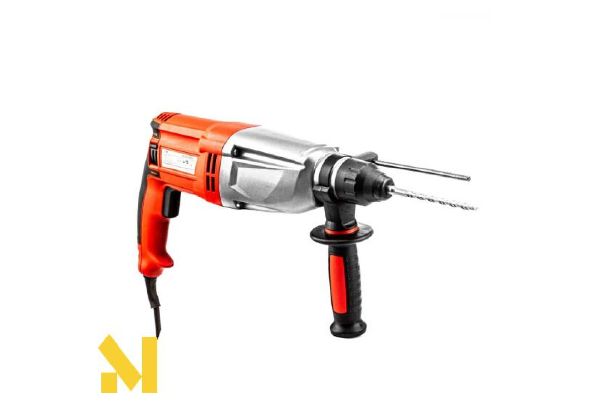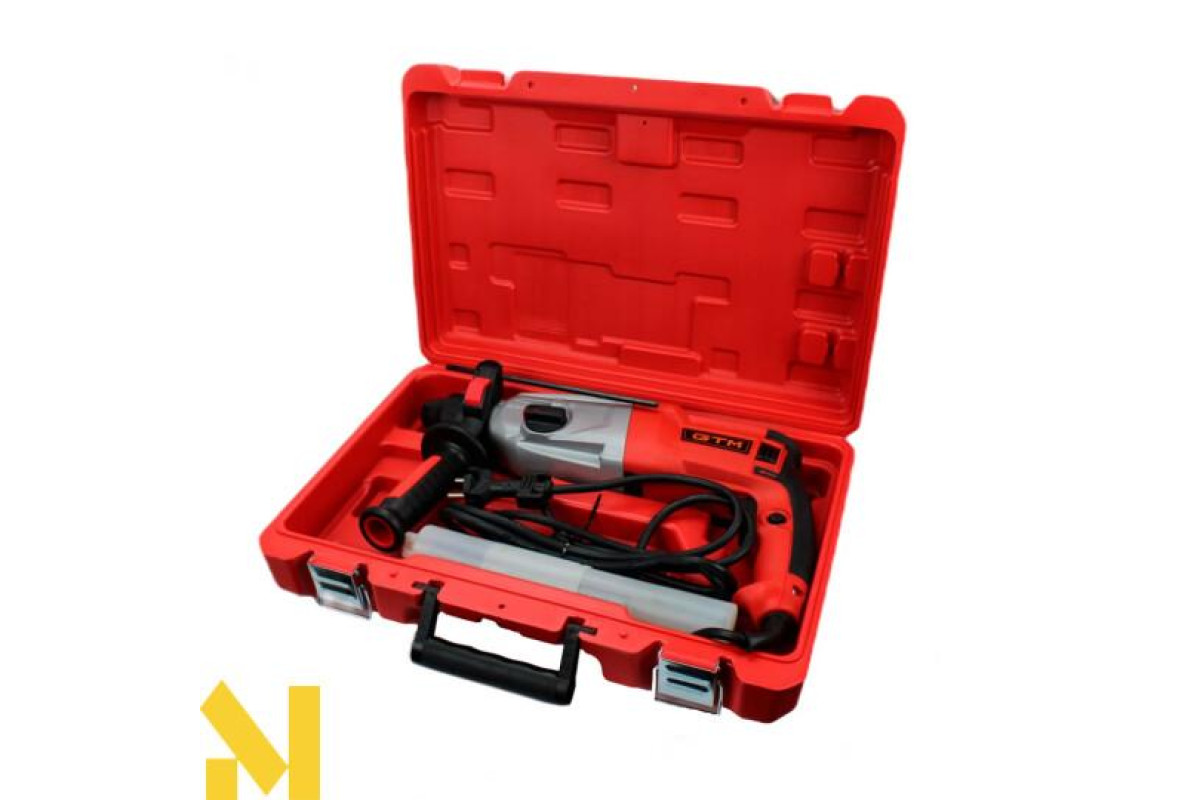 Перфоратор GTM RH28/850EV - напівпрофесійний перфоратор для проведення свердлильних робіт під час ремонту та будівництва В інструмент встановлений продуктивний колекторний двигун потужністю 850 Вт, який живиться від побутової мережі 220 В. У перфораторі є 3 робочі режими: просте свердління, свердління з ударом і довбання. Також для зручності є режим налаштування кута зубила для більш комфортної роботи. Перфоратор поставляється у міцному пластиковому кейсі з набором піків та бурів.