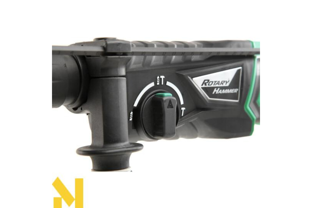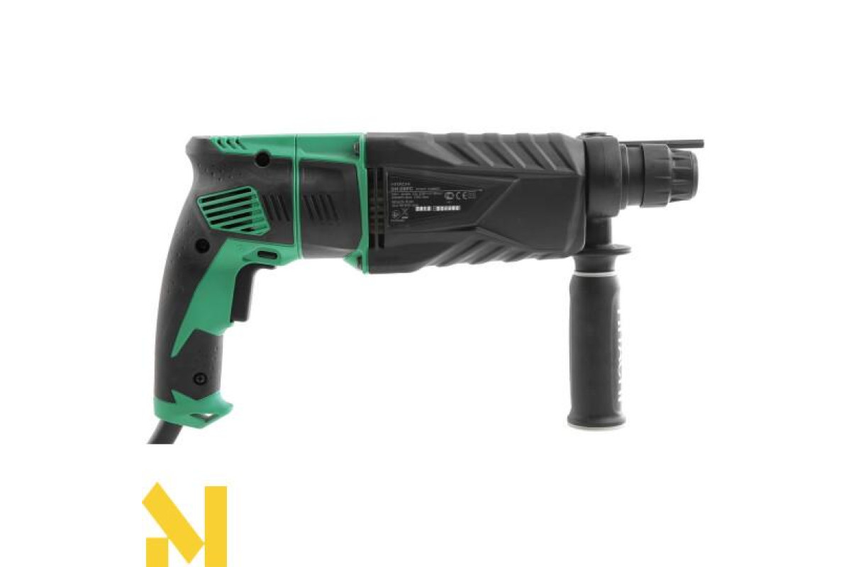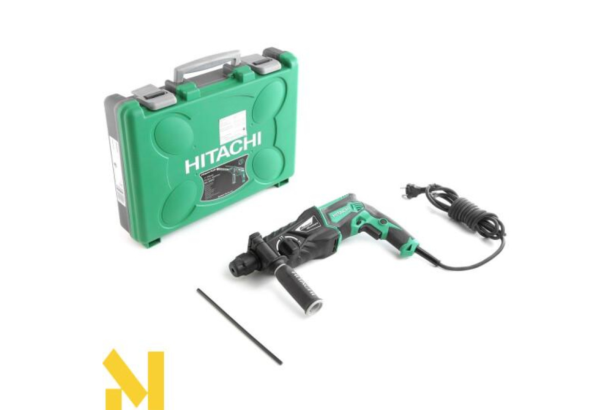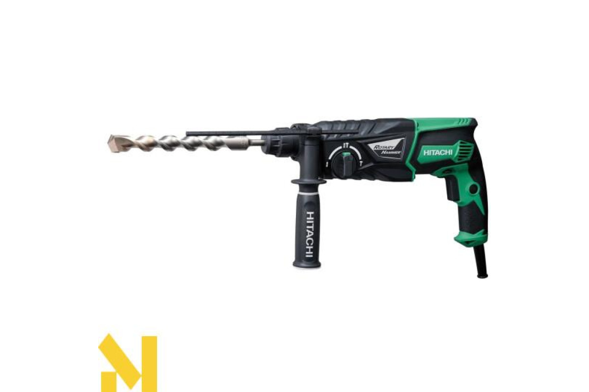 Hitachi DH26PC важить всього 2,8 кг, тому ним працювати досить легко. Він оснащений патроном SDS+, який дозволяє швидко змінювати насадку. Зручності додає новий ергономічний дизайн. До комплекту до головного інструмента додається бокова ручка та обмежувач глибини, які сприяють ефективній роботі.