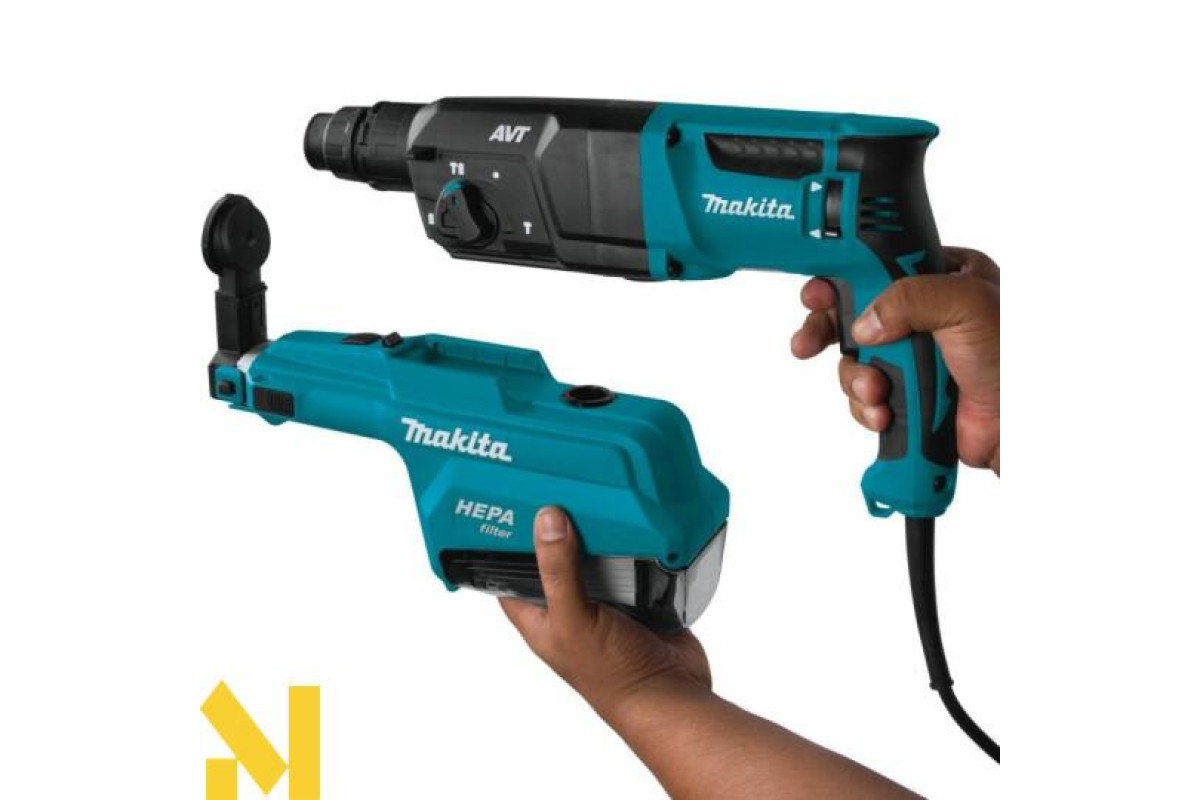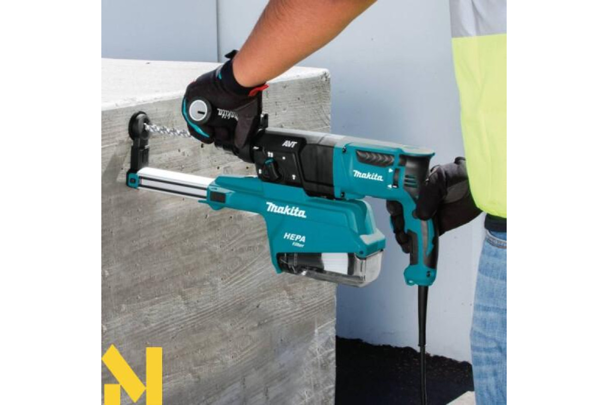 Безпечне з'єднання між всмоктуванням пристроєм і перфоратором запобігає витоку пилу