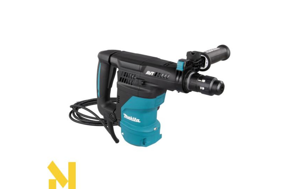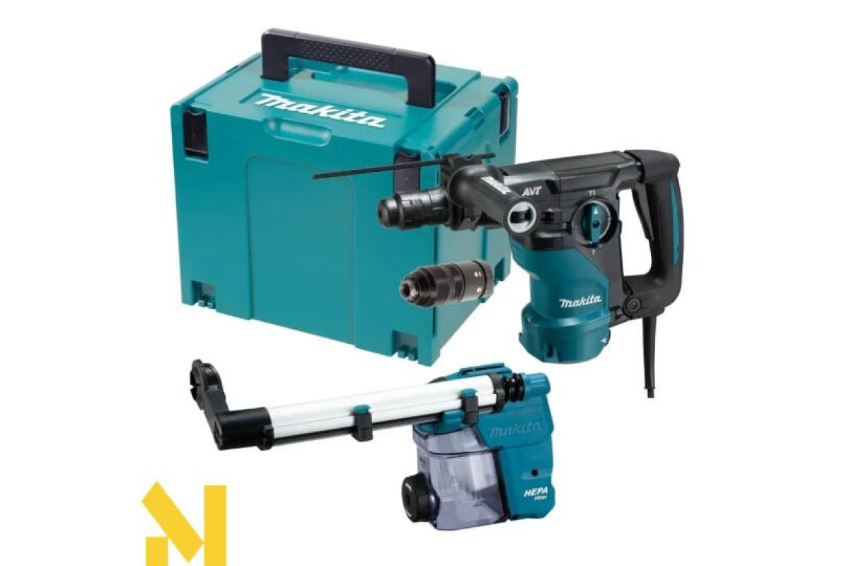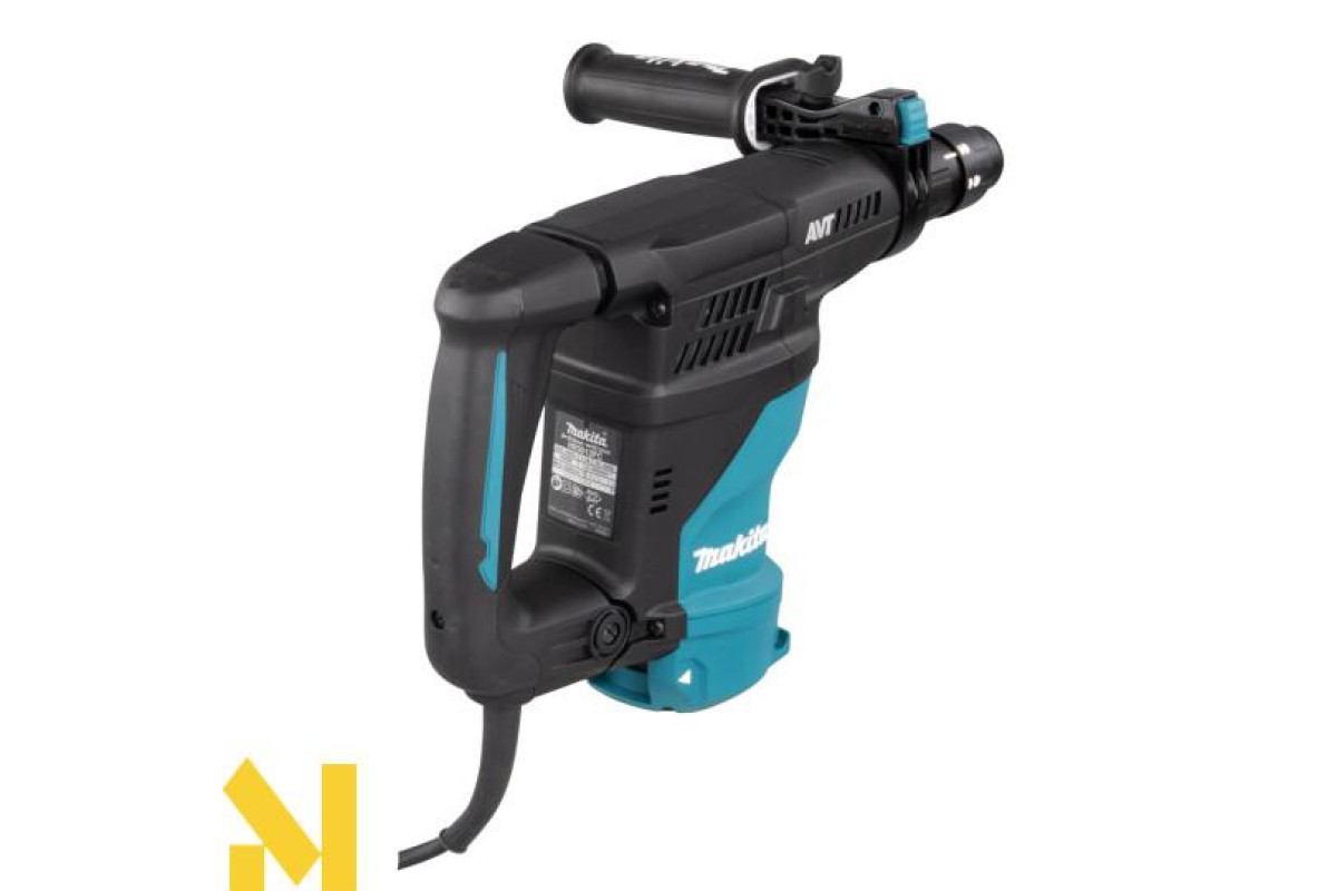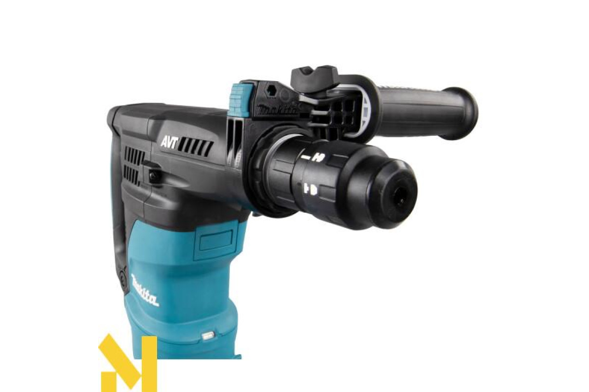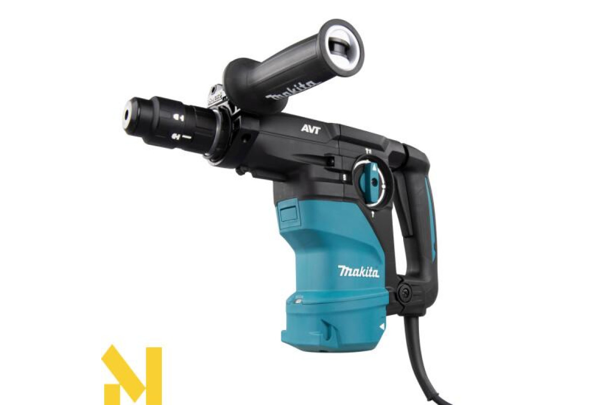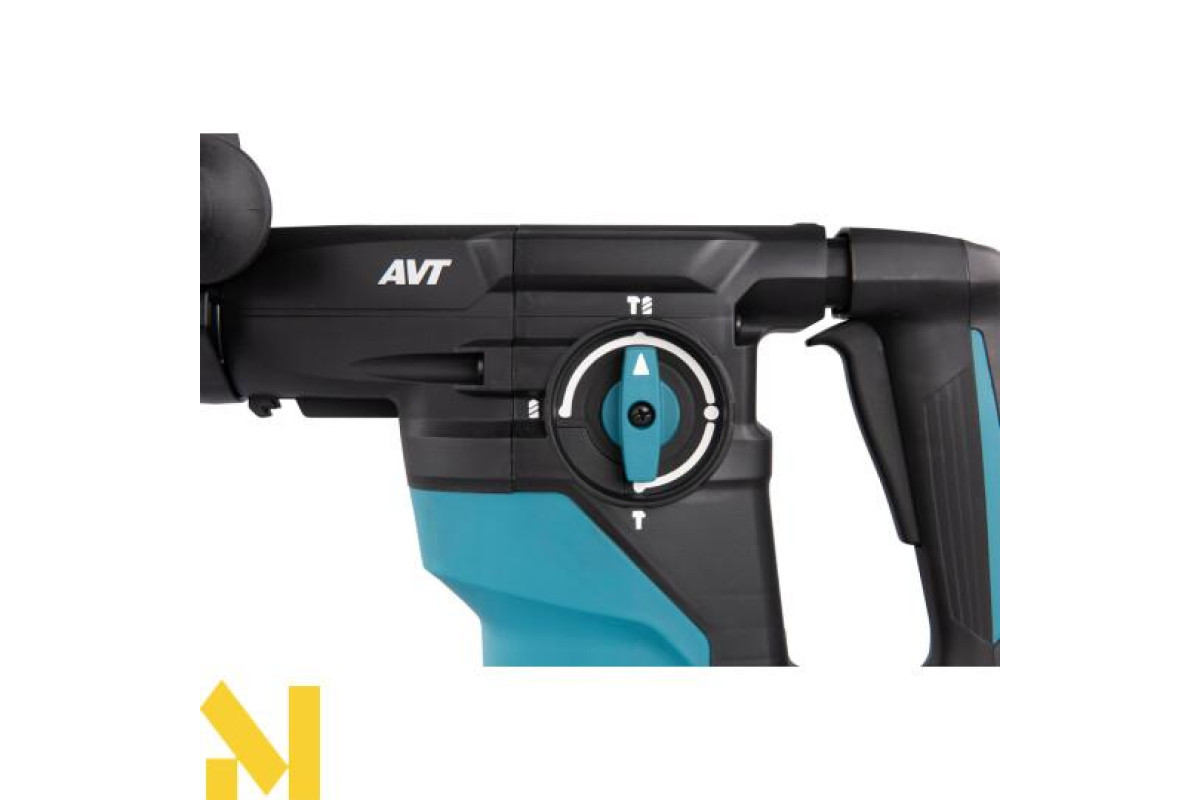 Дротовий перфоратор HR3012FCWJ з патроном SDS-Plus, потужністю 1050 Вт, унікальною антивібраційною системою AVT3 та режимами свердління, ударного свердління та довбання. Він має плавне регулювання швидкості від 0 до 840 об/хв та частоту ударів від 0 до 4500 об/хв за допомогою курка-перемикача, а також енергію удару 3,6 Дж. Максимальна глибина свердління в бетоні становить 30 мм. Фрикційна муфта захищає користувача у разі заклинювання свердла. Він має два різні механізми противаги: - противагу, який зменшує вібрації, спричинені довбанням;