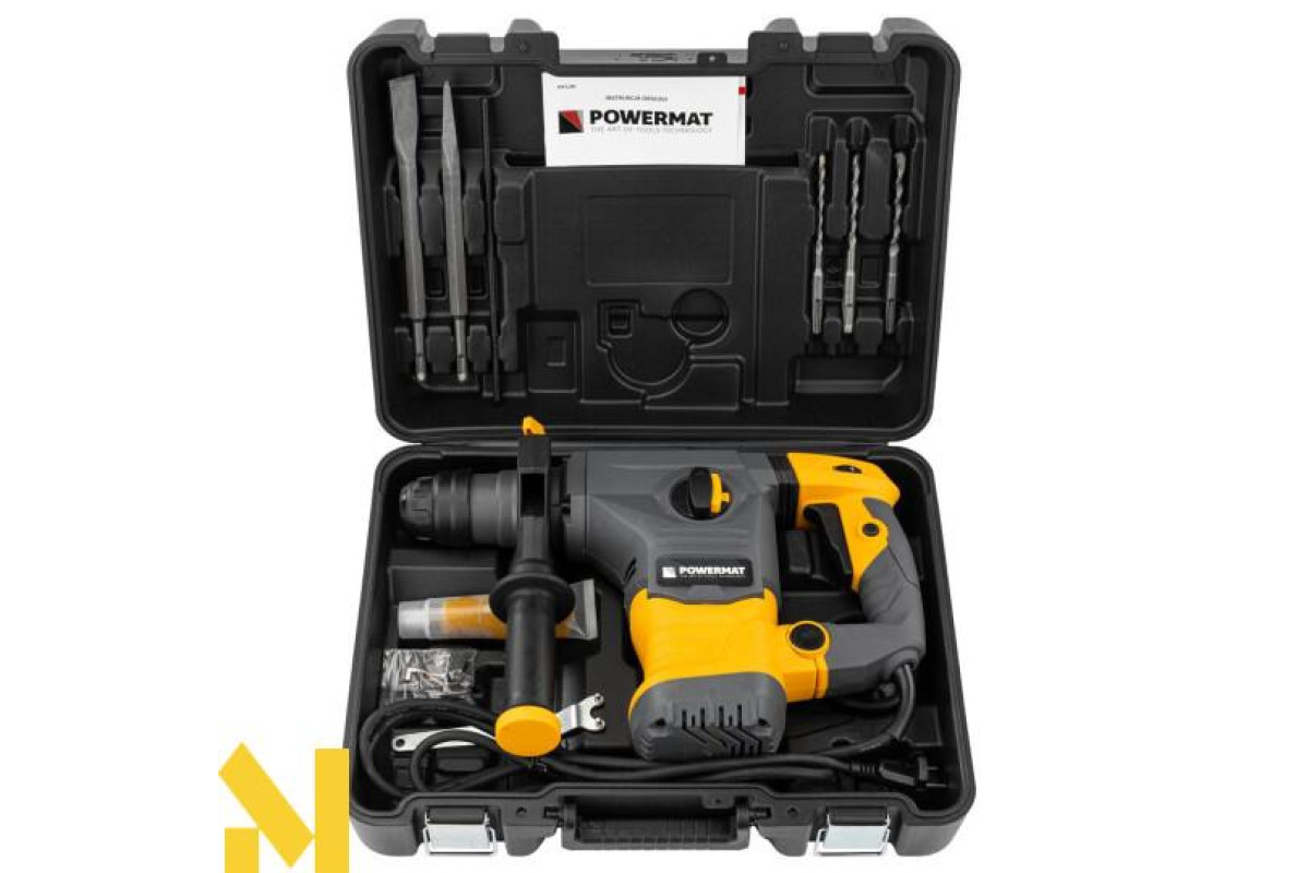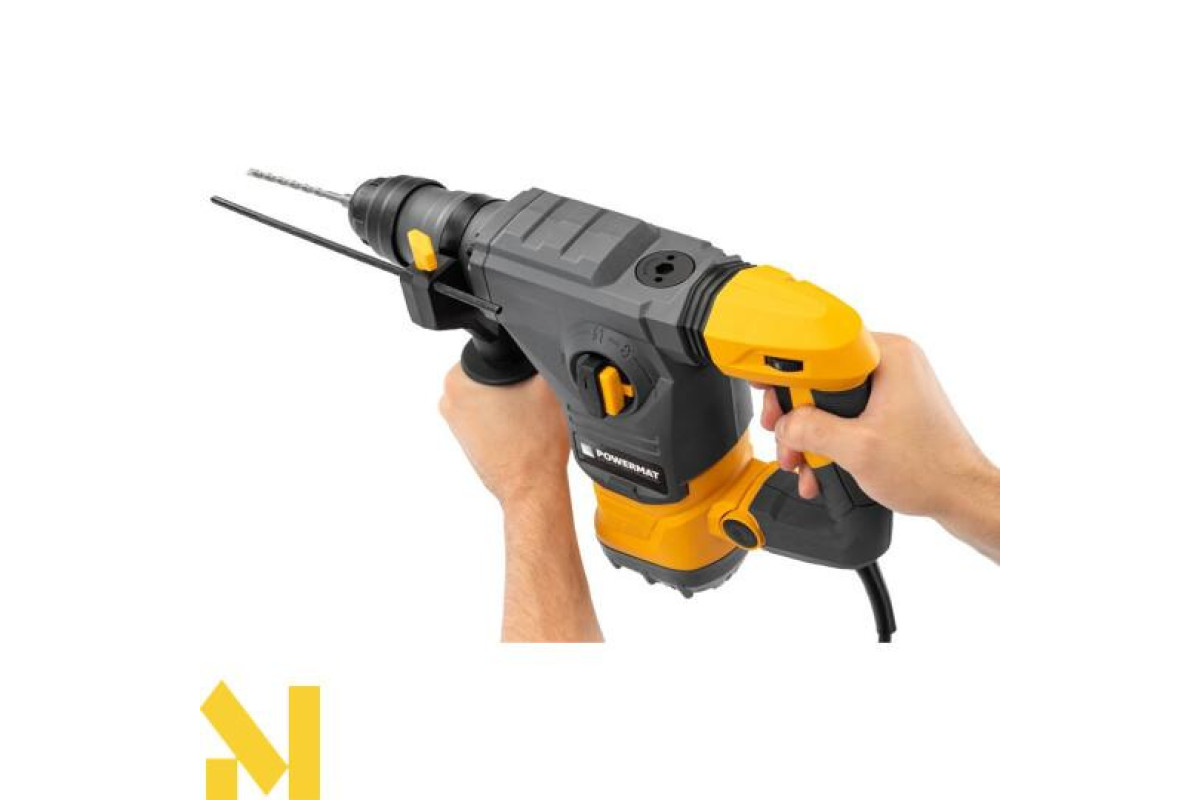 Компактний перфоратор POWERMAT оснащений щітковим двигуном потужністю 2600 Вт та енергією удару 5,5 Дж.
