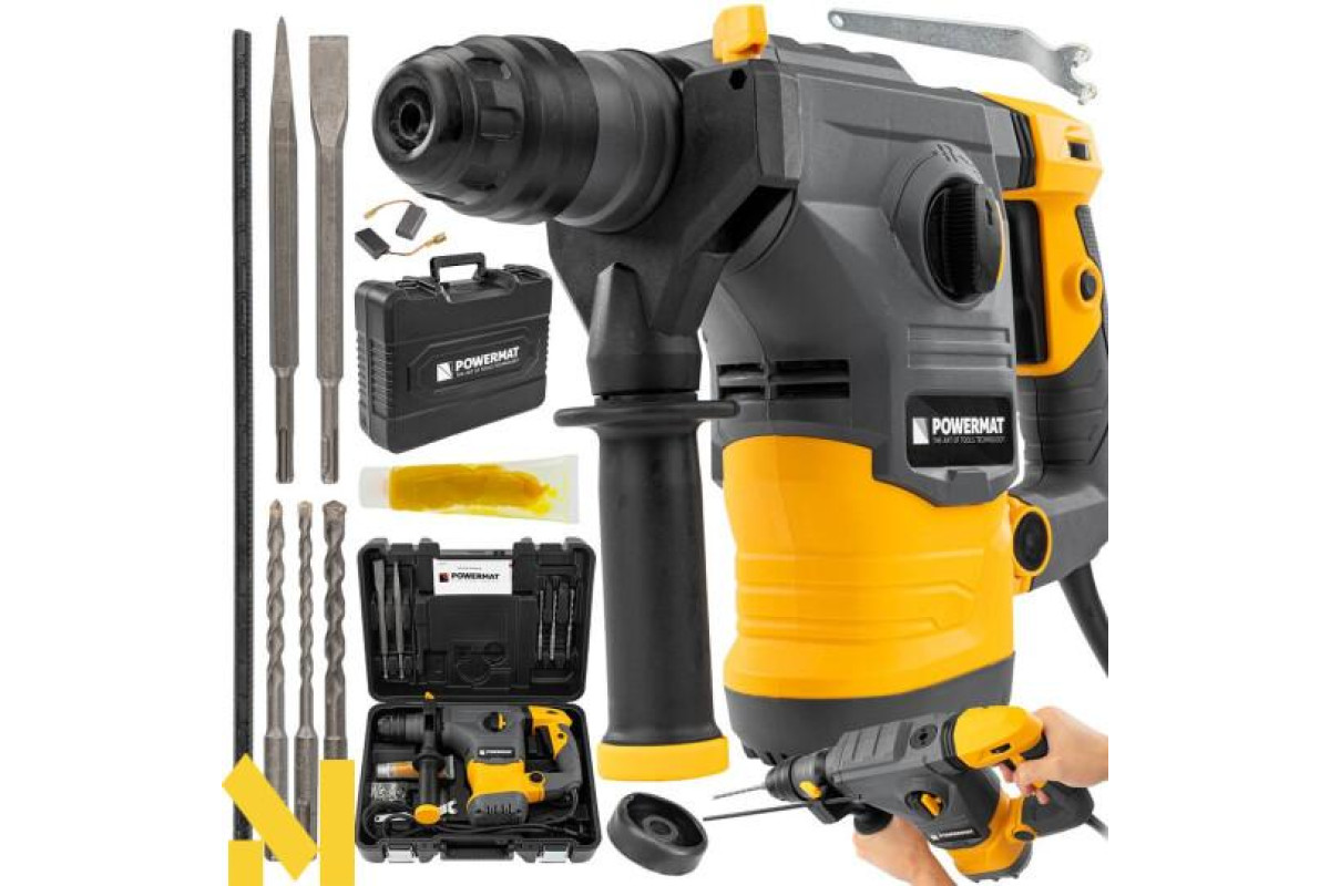 Надійний ударний дриль для виконання найскладніших завдань. Завдяки передовим технологіям і міцній конструкції перфоратор POWERMAT здатний свердлити до 32 мм у бетоні, до 40 мм у деревині та до 13 мм у сталі.