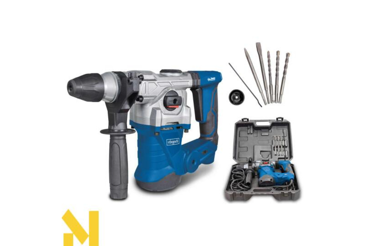 Завдяки чотирьом функціям – свердлінню, ударному свердлінню та довбанню – з механізмом блокування або без нього, DH1300PLUS підходить для широкого спектру застосувань. З частотою ударів до 45 000 уд/хв та швидкістю до 850 об/хв, перфоратор Scheppach призначений для свердління бетону, каменю та цегли. У бетоні цей потужний перфоратор може створювати отвори діаметром до 30 мм.