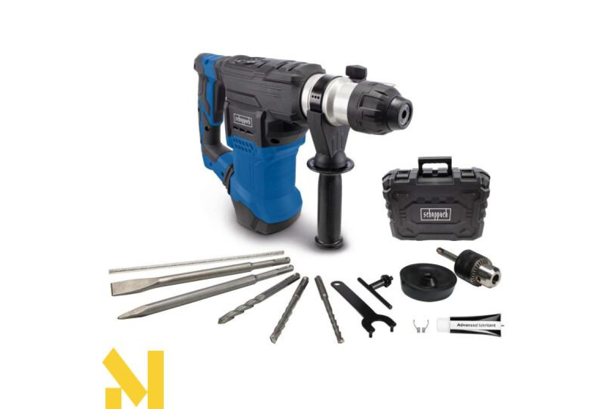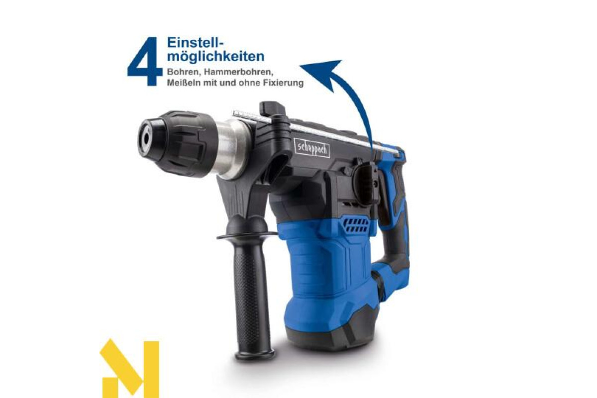 Потужний електричний перфоратор Scheppach DH1500 Plus з практичним набором функцій «4 в 1» ідеально підходить для інтенсивної роботи з каменю, бетону, плитки або цегли. Центральний перемикач дозволяє швидко та без інструментів вибрати одну з чотирьох функцій: свердління без удару, свердління з ударом та активацією ударного механізму, а також довбання з фіксацією або без неї. Завдяки ударній силі 7 джоулів і частоті обертання до 4250 уд/хв, DH1500 Plus подолає навіть найскладніші завдання. Завдяки системі кріплення SDS-Plus зміна інструменту здійснюється швидко та легко, без використання інструментів.