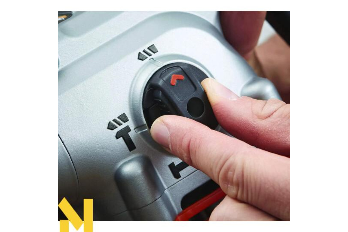 Широка клавіша пуску фіксується в положенні старт, з її допомогою також можна легко регулювати швидкість. Функція реверсу.