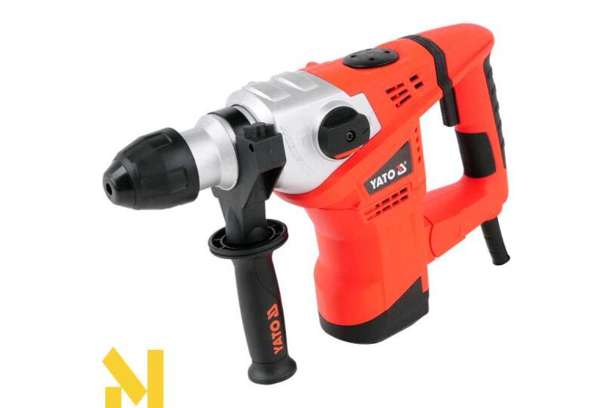 Перфоратор з потужністю 1500 W марки Yato. Корпус виконаний з металу, що забезпечує високу механічну міцність і більш швидке охолодження. Система вентиляційних отворів захищає пристрій від пилу і оптимізує циркуляцію повітря, що охолоджує ротор. Пристрій має пилонепроникний вимикач. В рукоять вбудовані глушник вібрації, що збільшує комфорт при роботі. Пристрій забезпечує частоту удару 3900 (хв-1) і енергію удару 5 Дж. Висока частота й енергія удару у поєднанні з великою швидкістю обертання забезпечує дуже швидке свердління.