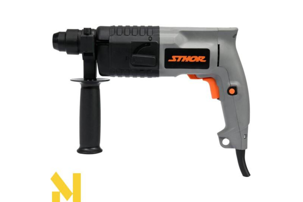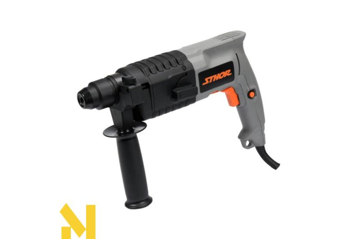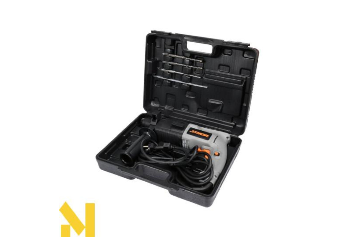 Ручний ударний дриль Sthor 500 W призначений для виконання отворів в бетоні, натуральному та штучному камені, мармурі тощо за допомогою робочих інструментів, оснащениххвостовиком SDS Plus, імає2 функції.
