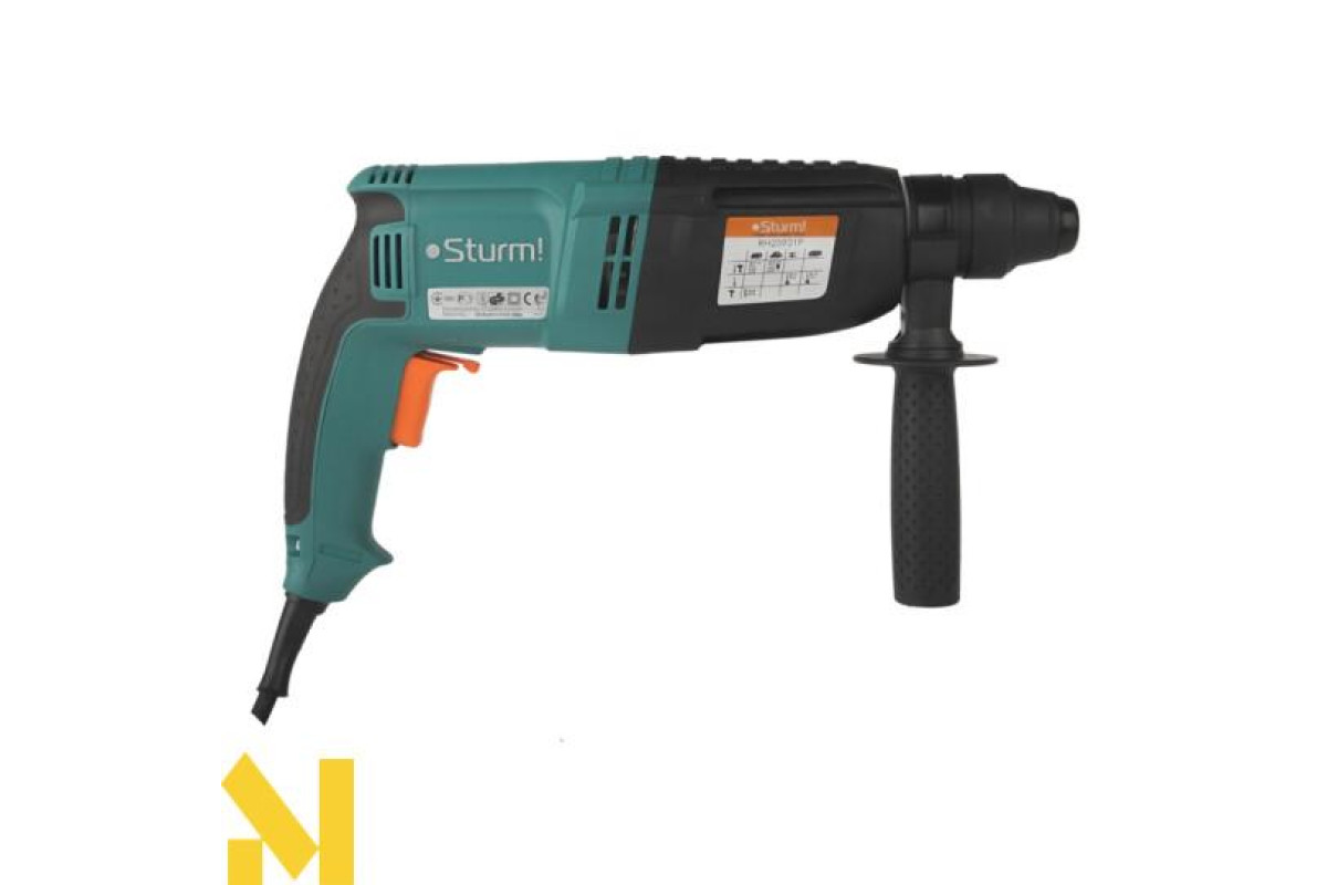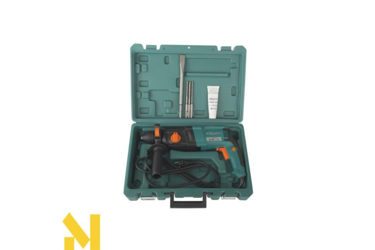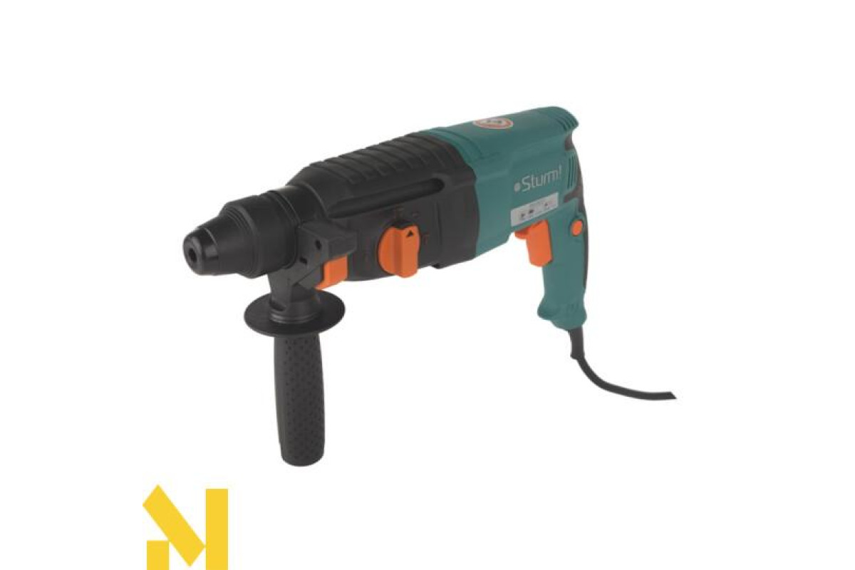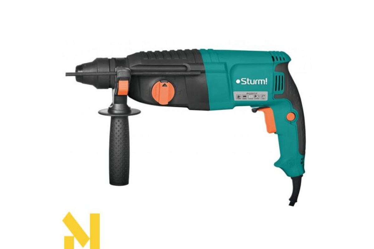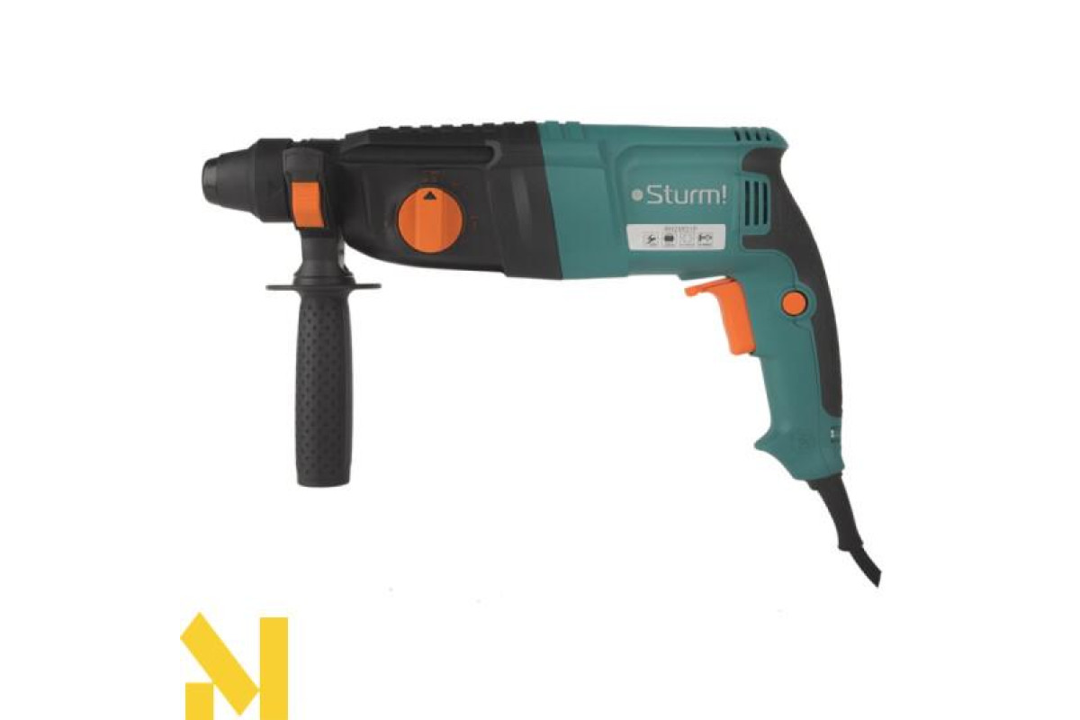 Перфоратор має гарну потужність двигуна 1200 Вт і великою силою удару 3 Дж. Додаткова передня ручка може повертатися на 360 ° для зручності в роботі. Особливості: функція реверсу, 3 режими роботи: свердління / свердління з ударом / довбання. Перфоратор Sturm оснащений системою SDS-plus для швидкої і зручної зміни бура.
