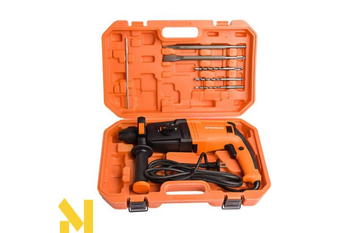 поставка в міцному пластиковому кейсі, в якому легко зберігати і переносити перфоратор на потрібний об'єкт.