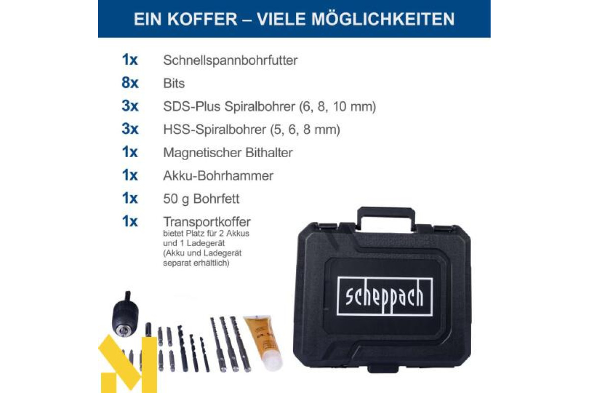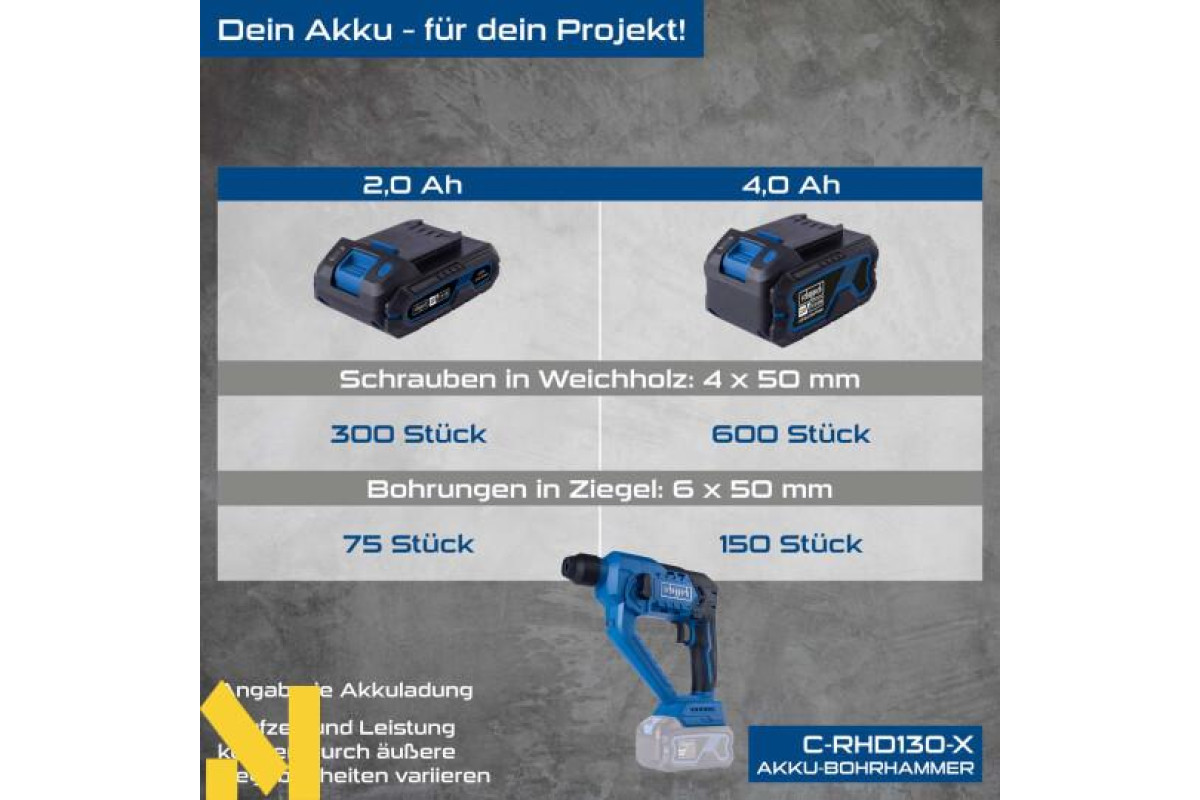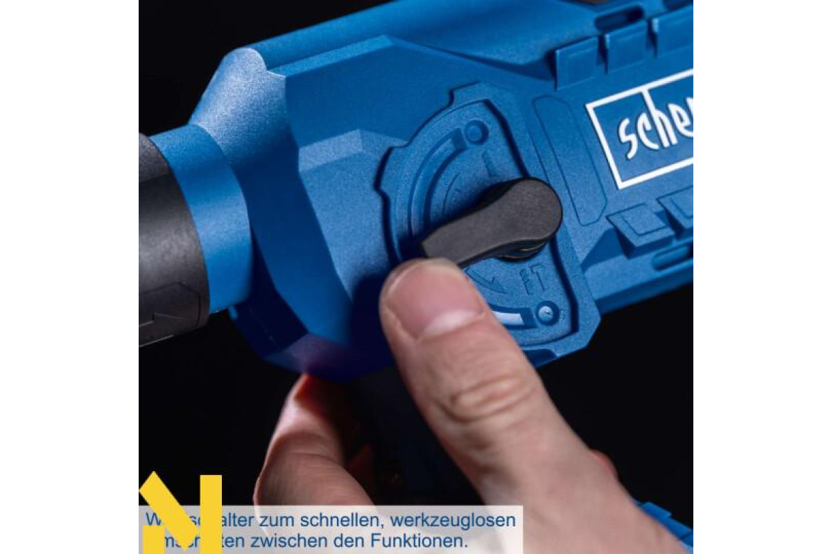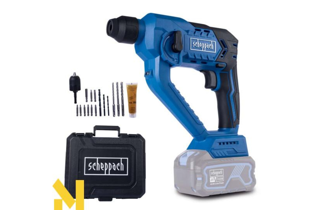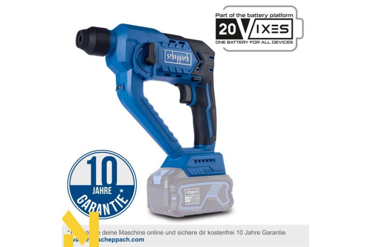Бездротова робота з Scheppach IXES серії 20 вольт – усі акумулятори та зарядні пристрої з системного асортименту можна комбінувати з акумуляторним перфоратором