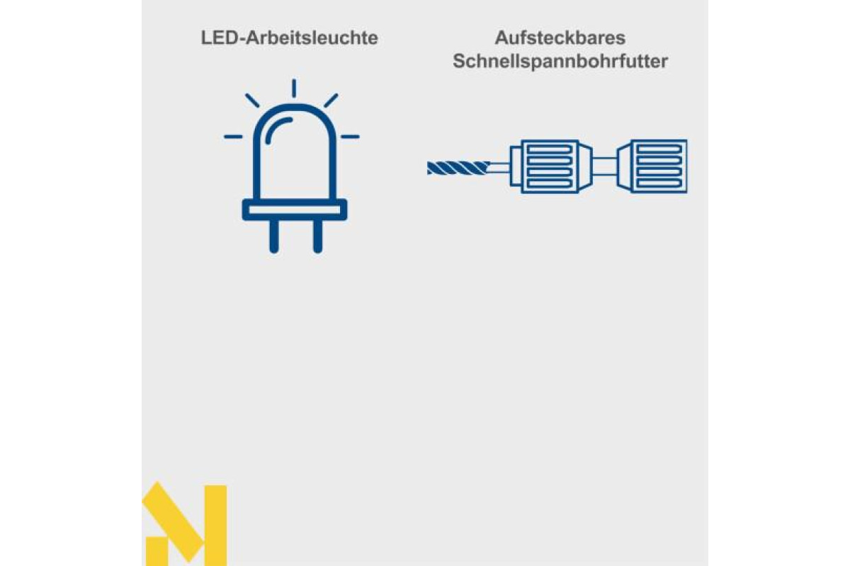 Практичний кейс для перенесення з аксесуарами: 1 швидкозатискний патрон, 8 біт, 3 свердла SDS-Plus Spirit (6, 8, 10 мм), 3 свердла HSS Spirit (5, 6, 8 мм), 1 магнітний тримач біт, 50 г мастила для свердління