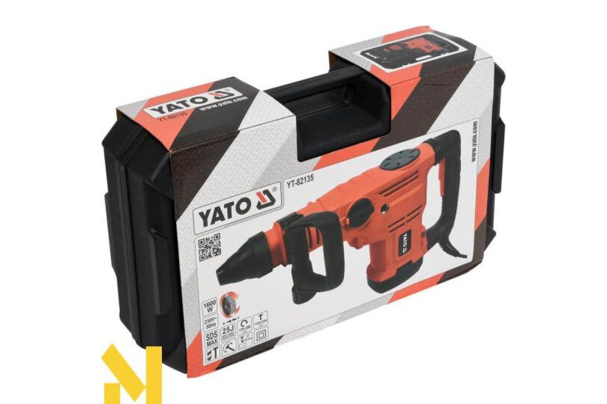 Перфоратор YATO YT-82135 — професійний інструмент із високопродуктивним двигуном потужністю 1600 Вт.