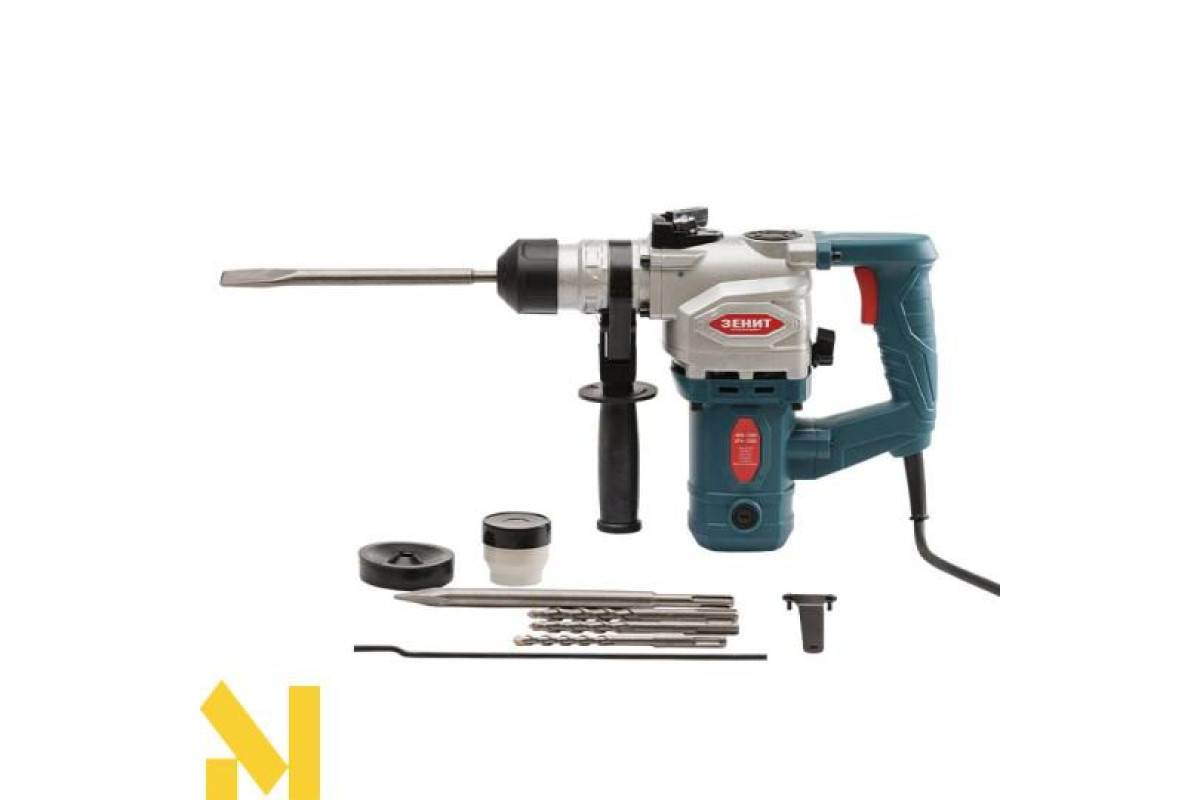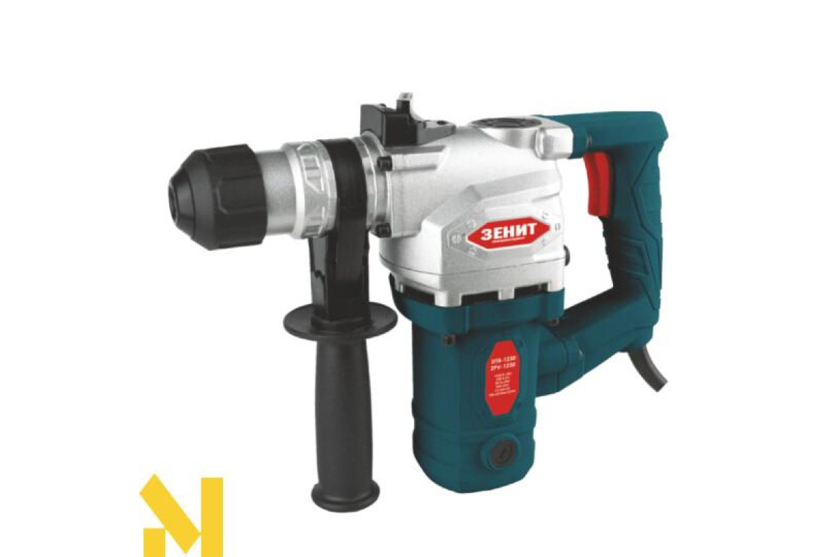 Перфоратор ручний електричний ЗЕНІТ ЗПВ 1230 - це ударний інструмент для буріння, штробления отворів і каналів, демонтажу конструкцій, ущільнення грунту, обробки матеріалів підвищеної щільності (типу бетону або цегли) спеціальними бурами або порожнистими коронками.