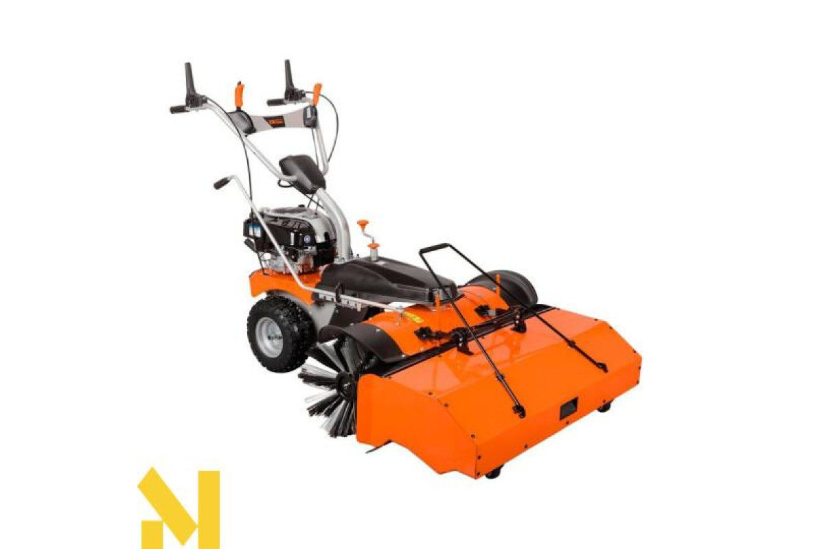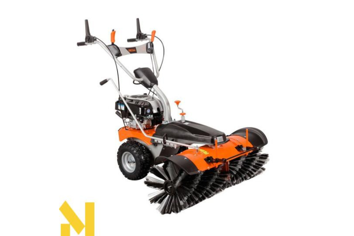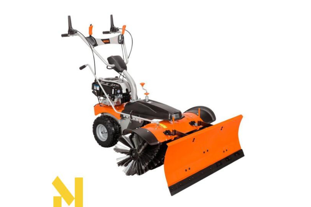 Підмітальна машина для використання цілий рік, має можливість нахилу щітки в кожну сторону (5 положень) і регульовану висоту щітки. Підходить для видалення опалого листя і свіжого снігу. Є можливість підключення переднього ножа і контейнера для відходів - купуються окремо.