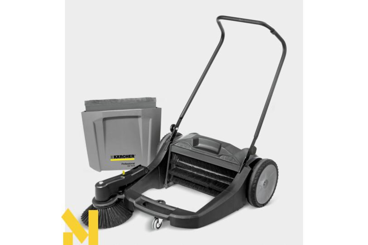 Підмітальна машина KM 70/15 C для прибирання невеликих внутрішніх і зовнішніх поверхонь. Площа очищення до 2800 м2 на годину. Легкість роботи і висока маневреність. Низьке пилоутворення, контролюється потоком повітря і пиловим фільтром. Основна роликова щітка приводиться в рух за допомогою двох коліс, що допомагає досягти хороших результатів очищення в кутах, як при правому, так і при лівому повороті. Ступеневе регулювання бічної щітки дає змогу оптимально налаштувати режим для прибирання підлоги. Економія місця під час зберігання і легкість транспортування за допомогою легкої ваги.