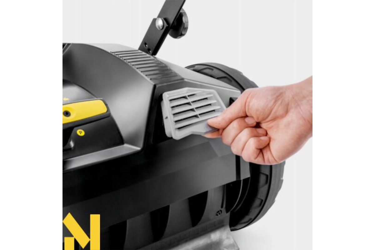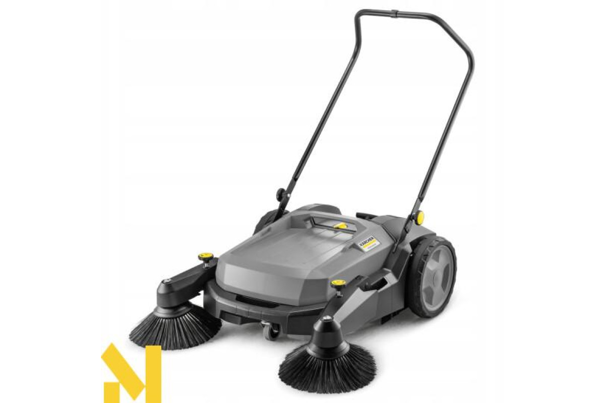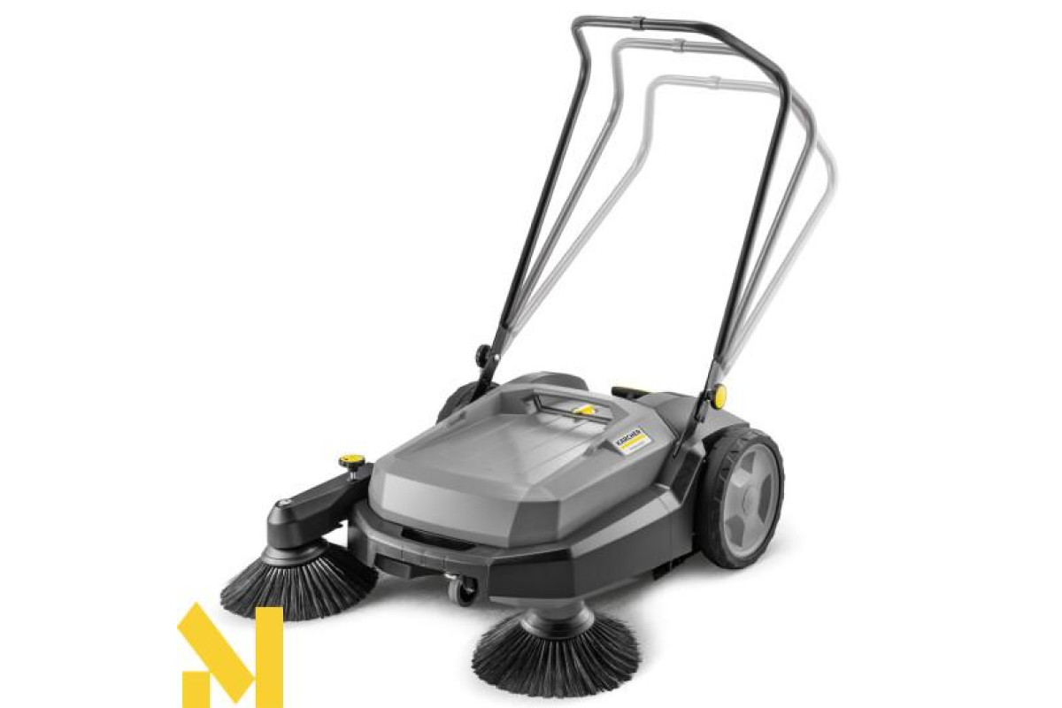 Ручна підмітальна машина KM 70/20 C 2SB для простого та необтяжливого чищення зовнішніх поверхонь. В 6 разів швидше, нуж віником. Підмітання майже без пилу завдяки контрольованій подачі повітря та фільтрації. Бокові щітки відкидаються. Боковий підмітальний валок переміщується в висоту і таким чином може пристосовуватись до різних видів підлоги. Двосторонній привод головного підмітального валка. Ручка відкидається, а також регулюється в висоту в 3 різних положеннях.