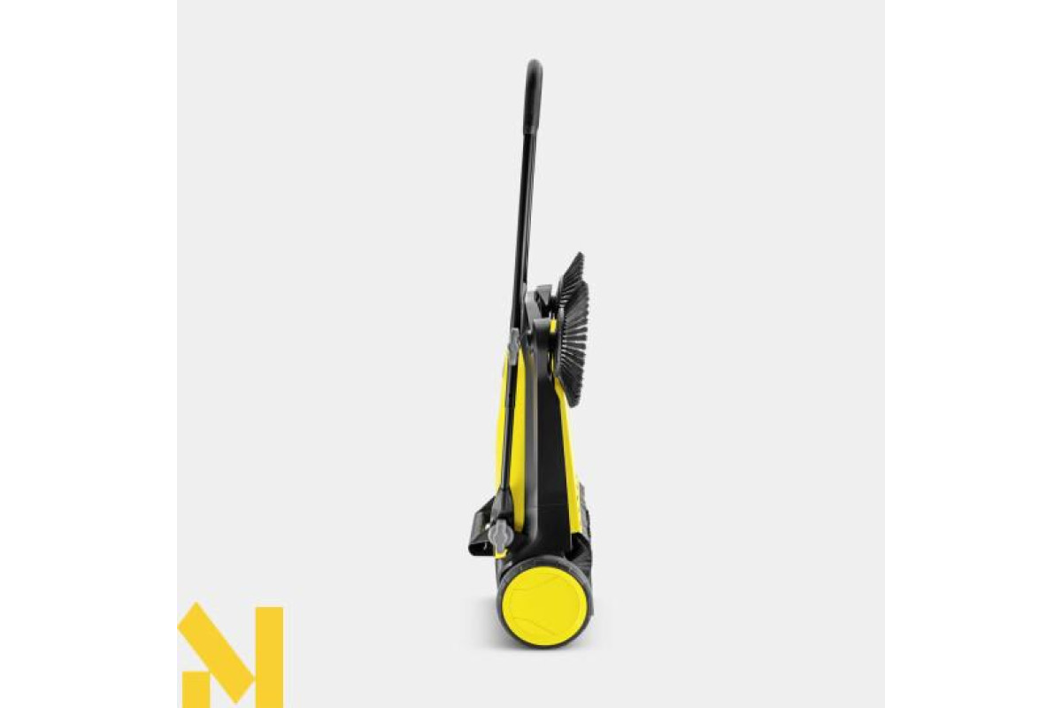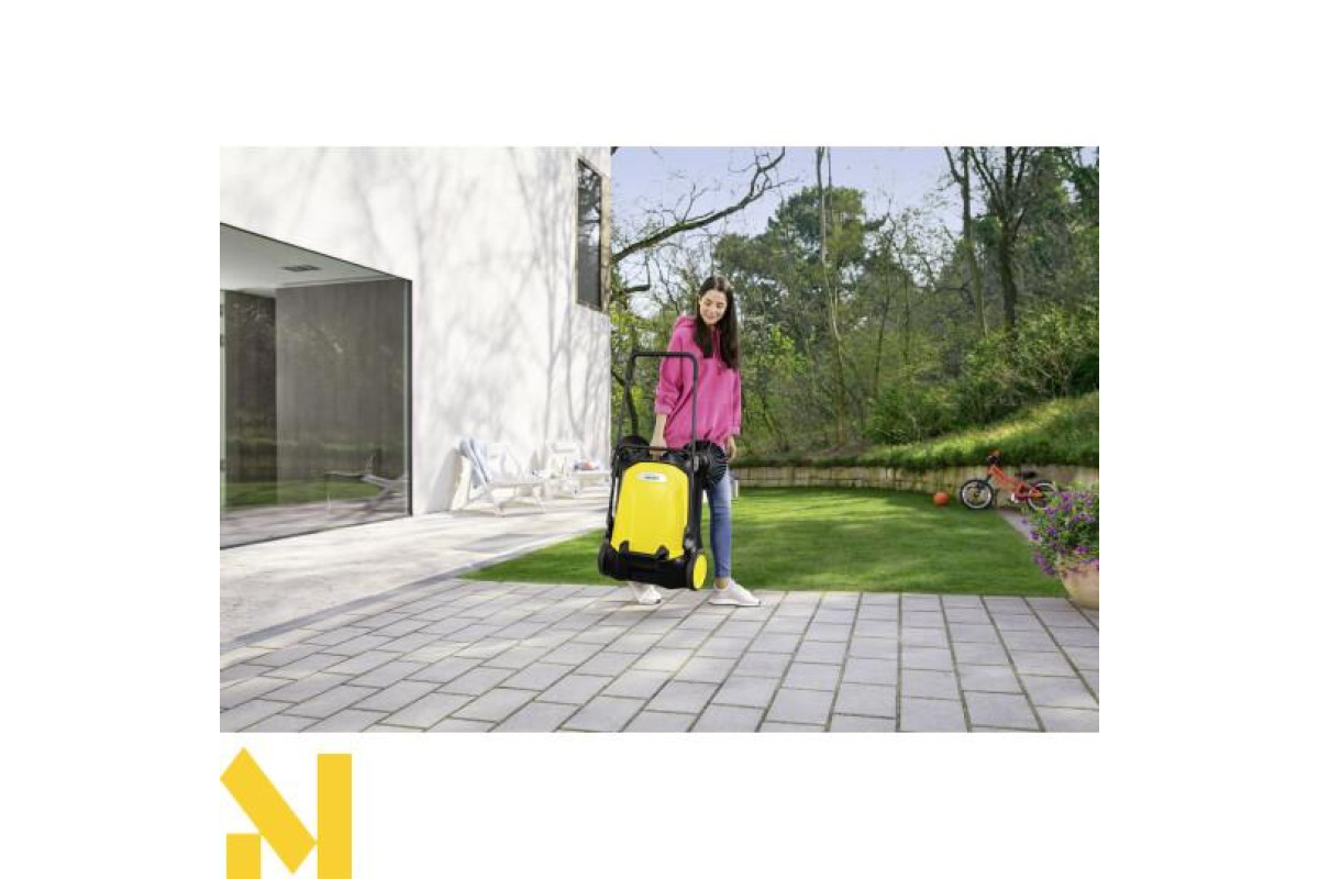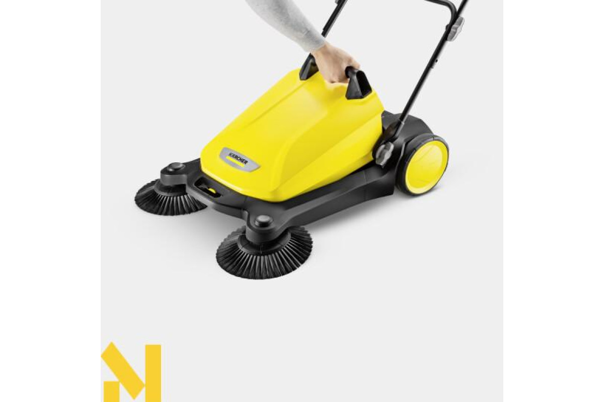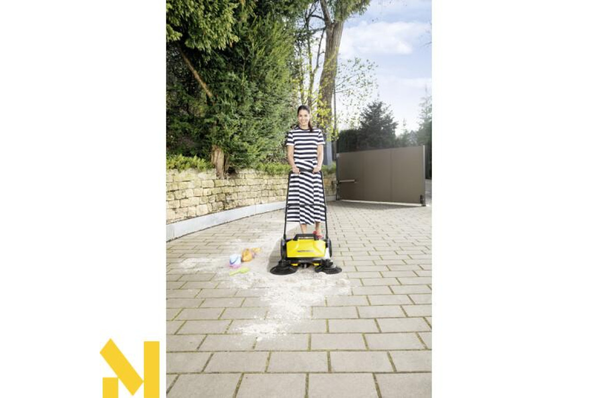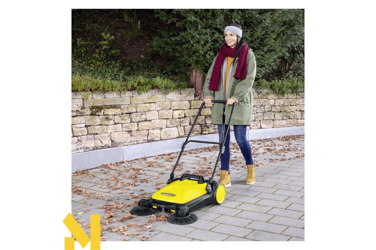 За допомогою підмітальної машини Kärcher S 4 Twin 2 в 1 тротуари і дороги, в'їзди і двори очищаються в п'ять разів швидше, ніж з використанням мітли і совка. При цьому сміття відразу ж збирається в контейнер машини. Сучасний підхід до збирання: легко, швидко і чисто! Протиударна і корозійно-стійка підмітальна машина має робочу ширину 680 міліметрів, дві бічні щітки і дві бічні спеціальні щітки з більш грубою щетини для збору вологого сміття. Машина розрахована для підмітання площ максимальною продуктивністю до 2400 м² на годину. Машина збирає сміття безпосередньо в 20 л контейнер. Міцна підмітальна машина маневрена і дуже зручна в роботі. Наддовгі щетинки бічних щіток забезпечують ретельну чистоту до країв. Регульована по висоті ергономічна рукоятка може бути оптимально підлаштована під зріст користувача. Ручка може бути складена для вертикального зберігання з економією місця. Сміття можна легко висипати з контейнера без контакту з брудом.