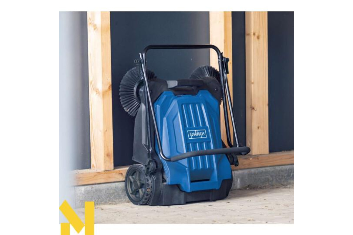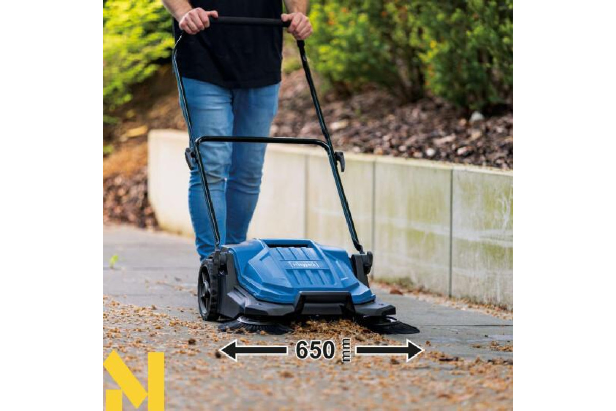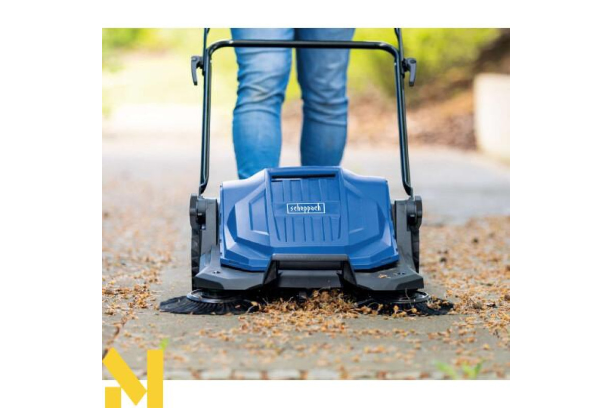 Підмітально-прибиральна машина Scheppach S800 ідеально підходить для підмітання під'їзних шляхів, патіо, внутрішніх дворів або тротуарів. Завдяки ширині захвату 650 мм та системі підмітання Scheppach з 3 щітками, двома дисковими щітками та однією роликовою щіткою, вона може підмітати площі до 2600 м² . Сміття потрапляє в 20-літровий ударостійкий пластиковий контейнер для підмітання, який можна легко спорожнити. Швидкознімний кріплення дозволяє легко скласти ручку вперед для економії місця при зберіганні.
