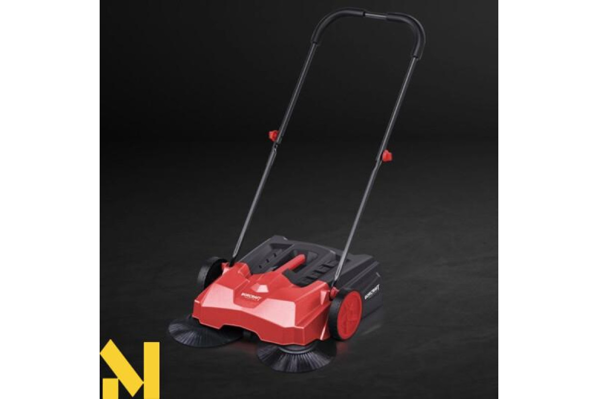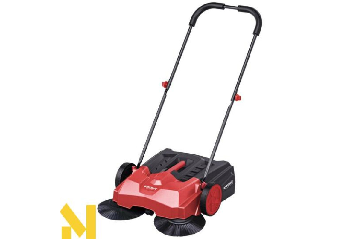 Ручне переміщення підмітальної машини впливає на механізм обертання щіток, які збирають пил, листя, дрібне сміття і будівельні відходи в знімний контейнер. Використовується для прибирання житлових, виробничих приміщень, тротуарів і прилеглої території.