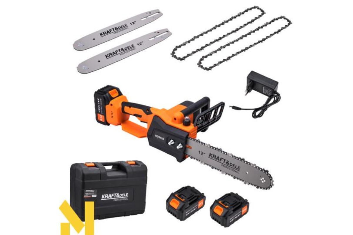 Професійна акумуляторна пила від Kraft&Dele модель KD5125- зручний інструмент, який можна використовувати в саду або городі, ідеально підходить для невеликих робіт. Головні переваги нашої пилки - це свобода роботи та простота експлуатації. Вам більше не потрібні кабелі чи пальне, просто зарядіть акумулятори. Легко обрізайте гілки на висоті, не заплутуючи кабелі.