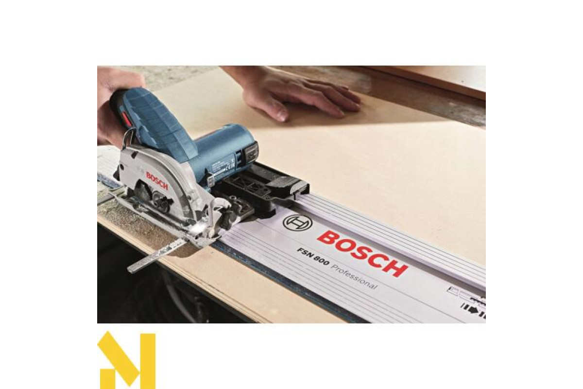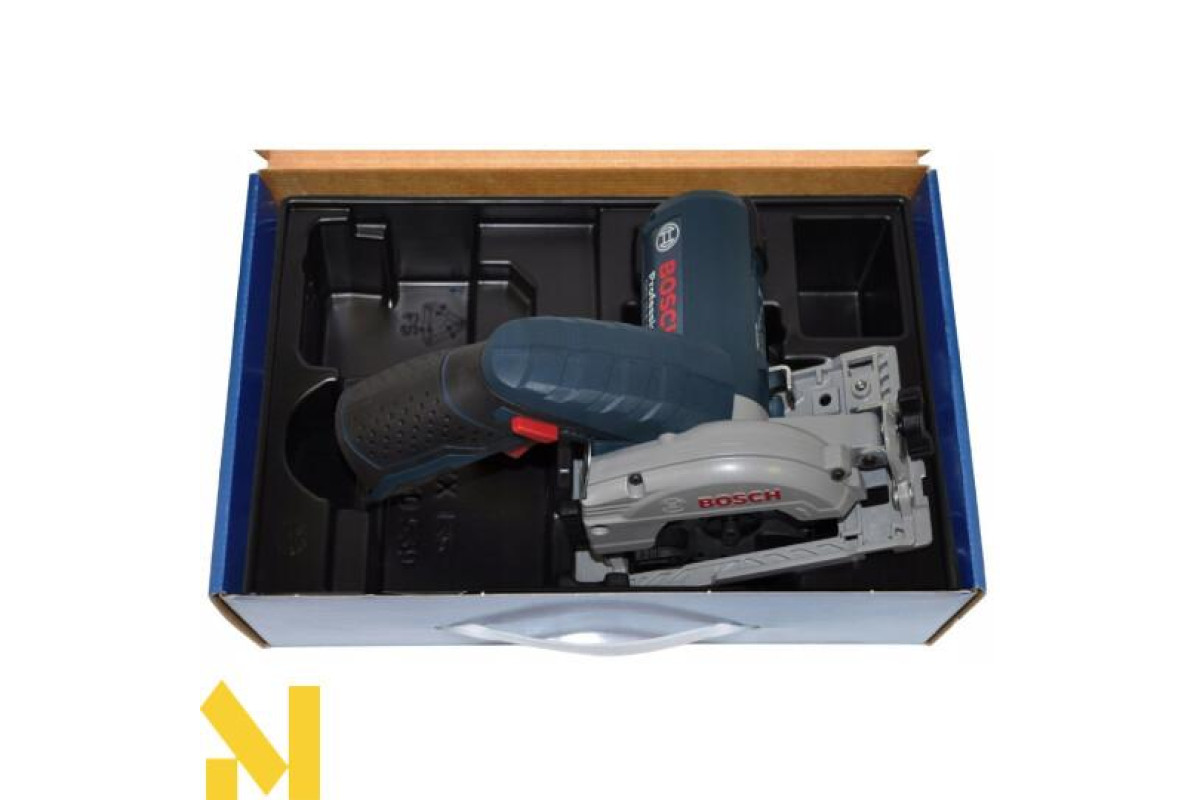 Акумуляторна циркулярна пила Bosch GKS 10,8 V-LI Professional оснащена надійною алюмінієвою опорною плитою для високоточного пропилу. В комплект поставки до інструменту також входять паралельний упор и перехідник для направляючої шини Bosch.