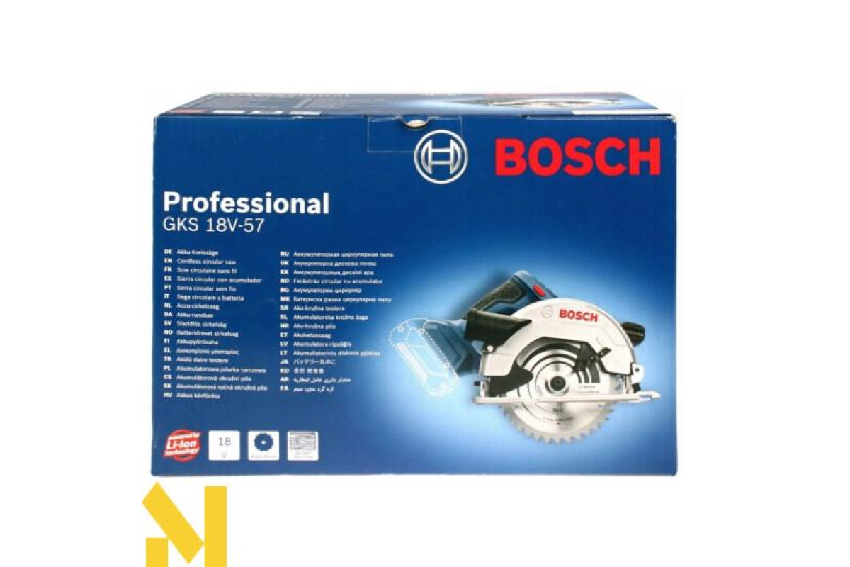 Дискова пилка Bosch GKS 18 V-57 має досить потужним двигуном, що дозволяє без проблем справлятися з розпилюванням різних матеріалів з деревини. Особливості конструкції дозволяють здійснювати розпилювання під кутами 90 і 45 гр. Інструмент розрахований на роботу від Li-Ion акумуляторів, при цьому потужності характеристики цілком можуть бути порівняні з характеристиками мережевих інструментів.