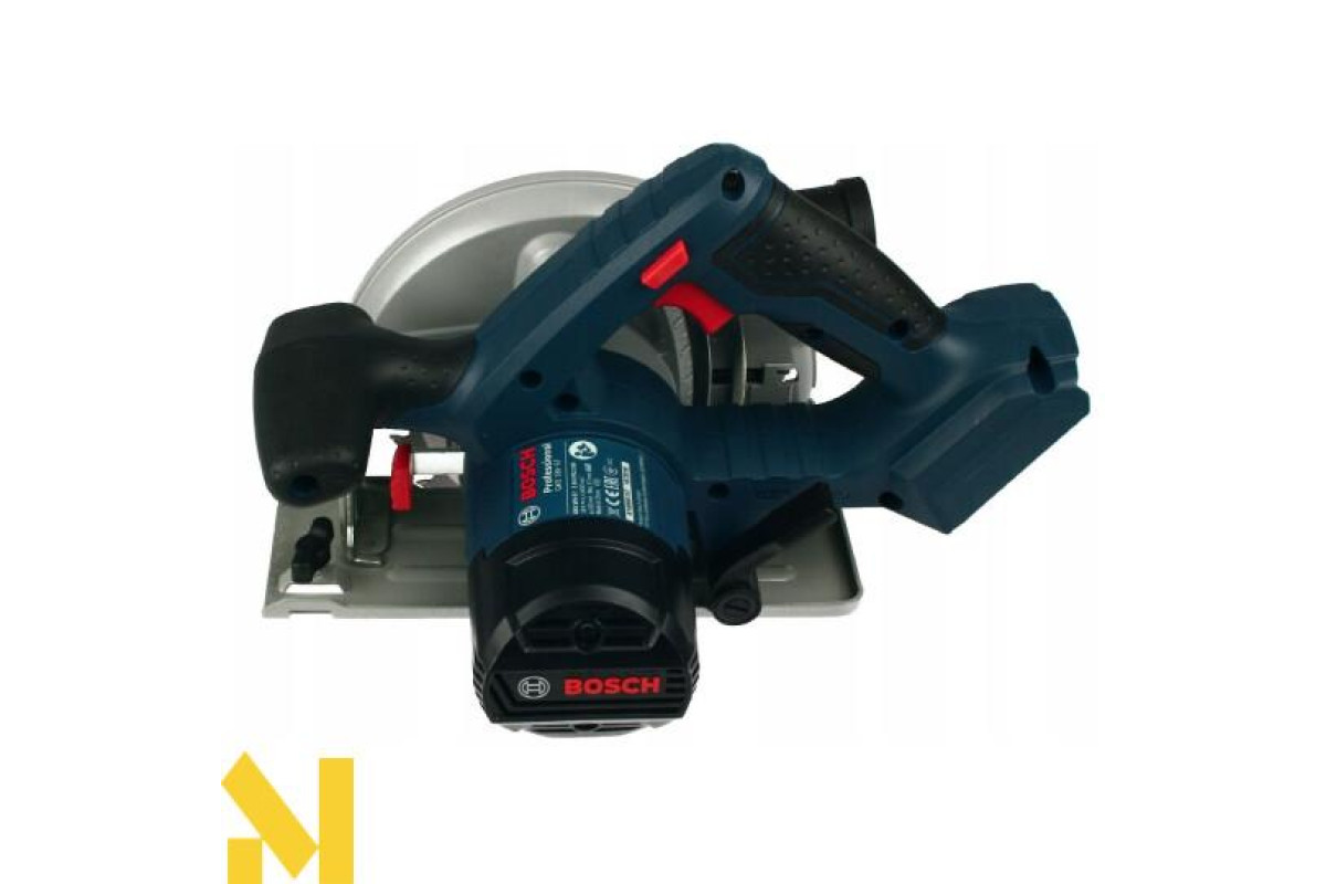 Акумуляторна дискова пила Bosch GKS 18 V-57 має компактний корпусом, що робить її зручною у використанні. Інструмент оснащений зручною ручкою з м'якою накладкою, також зручне розташування кнопки вимикача. Лівобічний розпилювальний диск забезпечений захисним кожухом. Таким чином, конструкція пили забезпечує комфортну експлуатацію інструменту. Версія без акумуляторів.