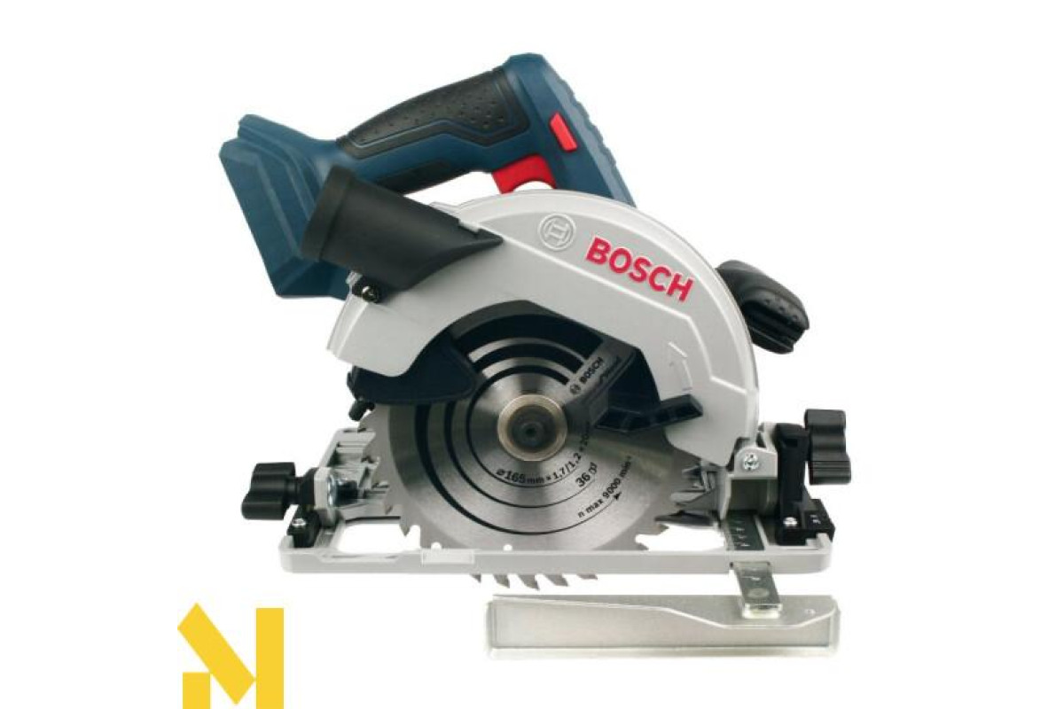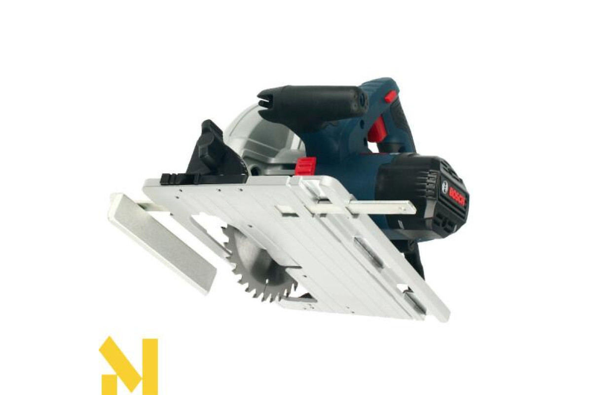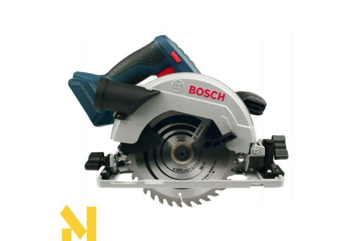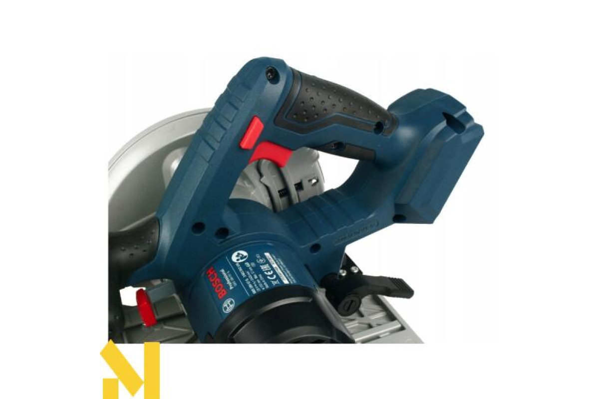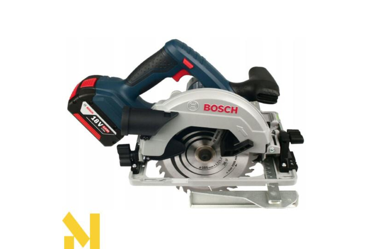 Потужна циркулярка Bosch GKS 18V-57 G, що працює на літій-іонному 18-В, 5-приміщення повинна бути захищена акумуляторі, виконує в деревині рівні поздовжні і поперечні різи глибиною 57 мм і косі зрізи під кутом 45 градусів глибиною 42 мм. Пильний диск діаметром 165 мм з посадкою 20 мм встановлений на правій стороні інструменту і за хвилину робить 3400 обертів. Блокування шпинделя. Опорна плита 252 × 194 мм. Поставляється в L-Boxx 238 з направляючою рейкою FSN, паралельним упором, двома акумуляторами, зарядним пристроєм і адаптером для підключення пилососа.
