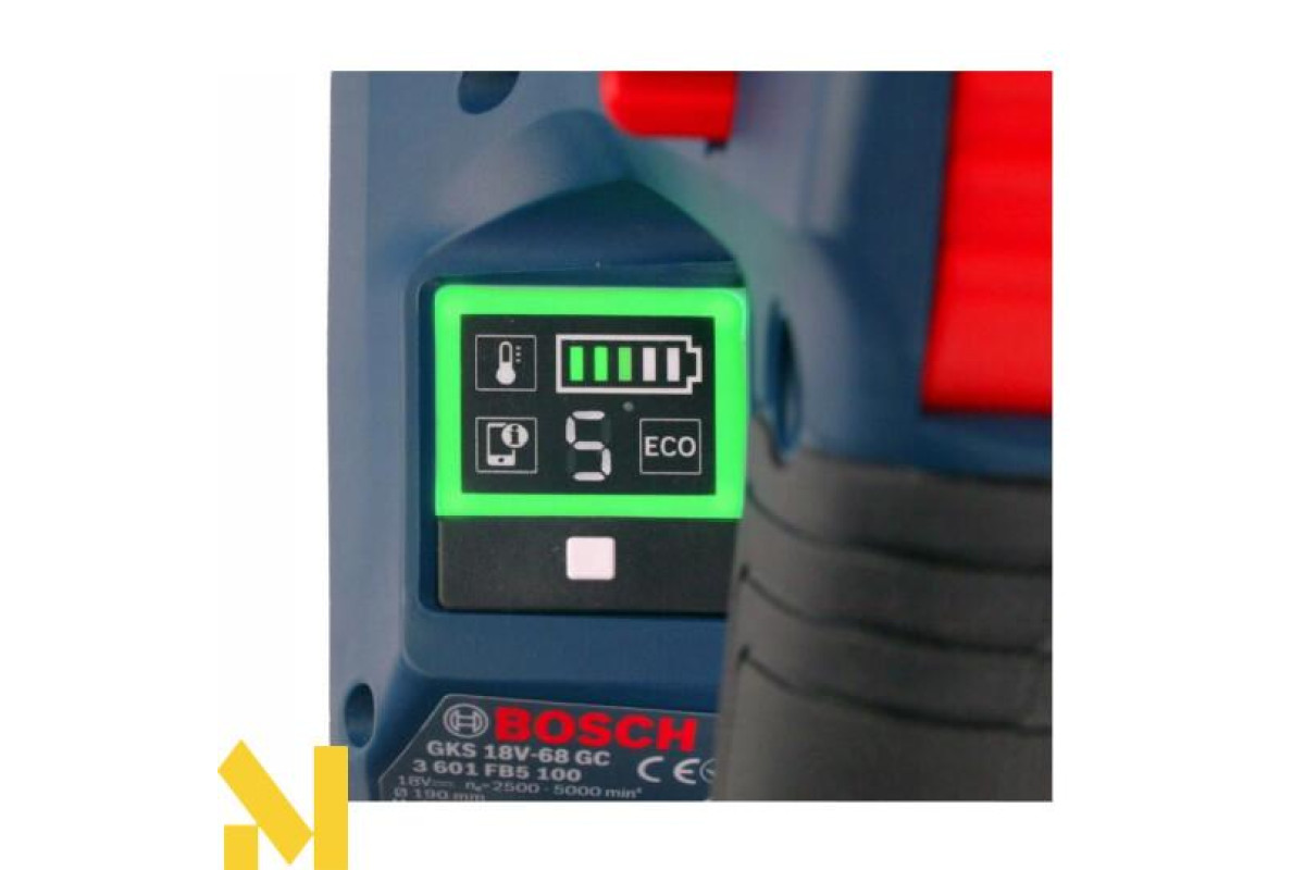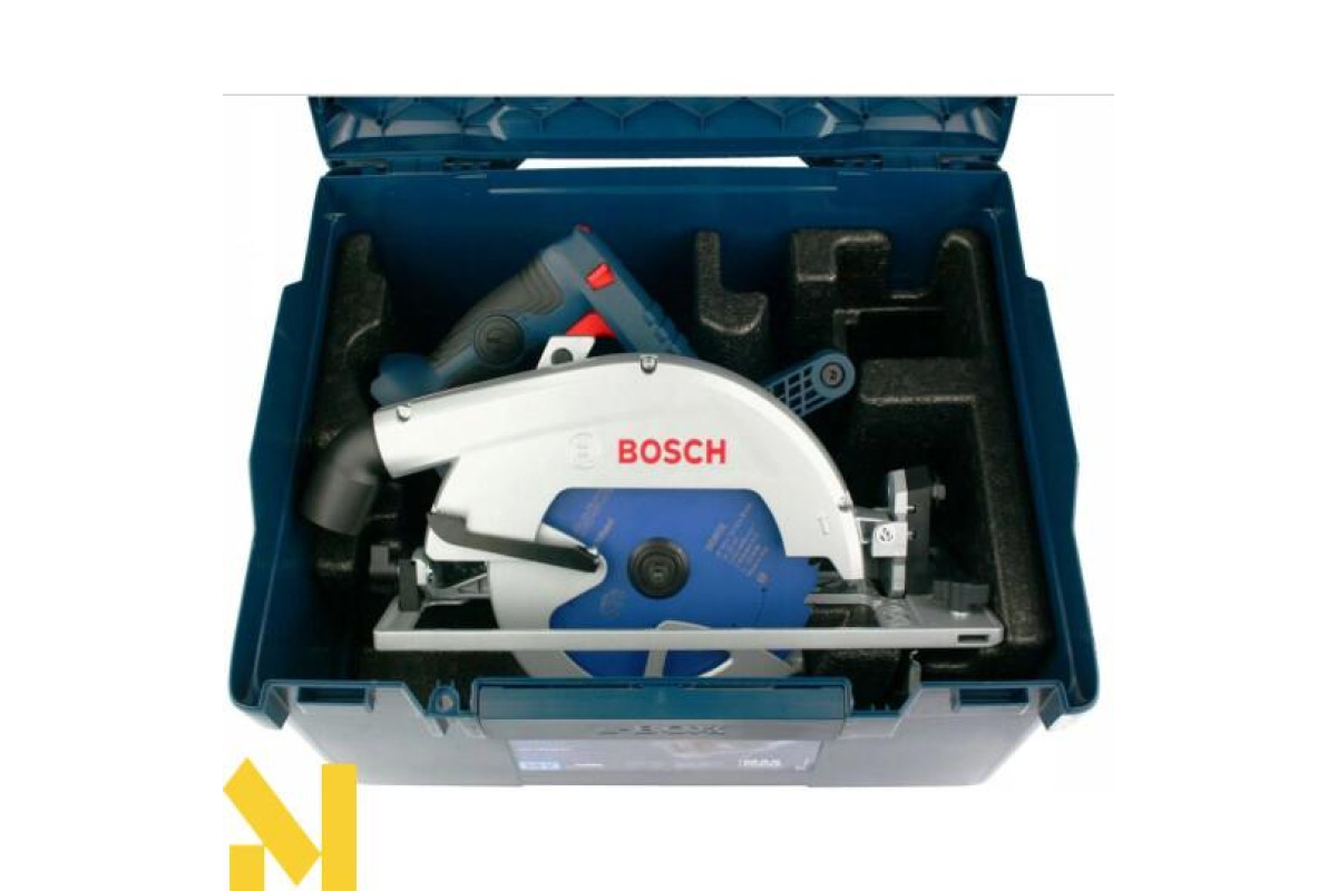 Циркулярна пила Bosch GKS 18V-68 GC працює на Li-Ion акумулятор 18 В. Регульована швидкість обертання диска до 5000 об/хв. Для роботи дисками 184-190 мм в діаметрі з посадкою 30 мм. Поставляється в кейсі L-Boxx з пильним диском і паралельним упором.