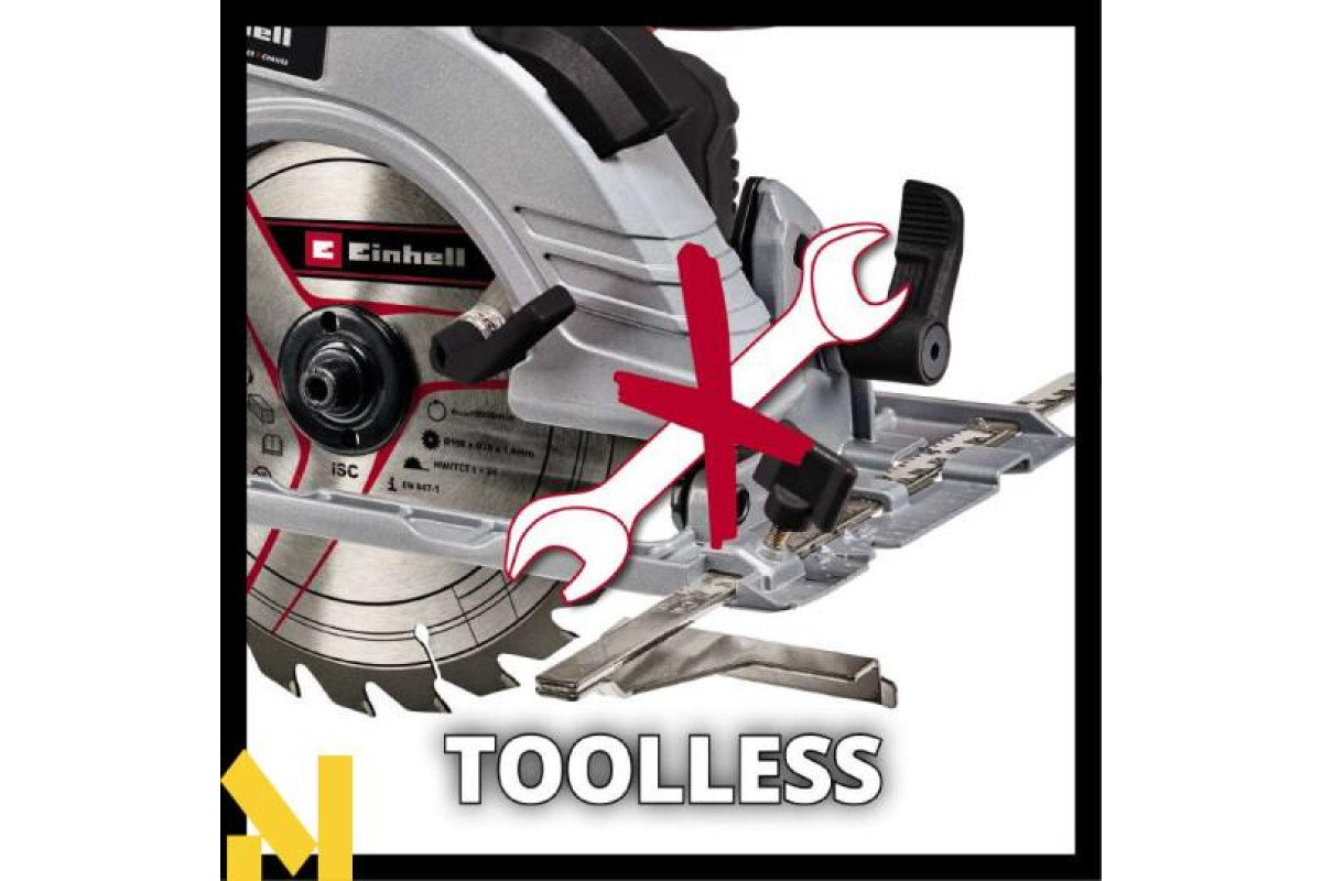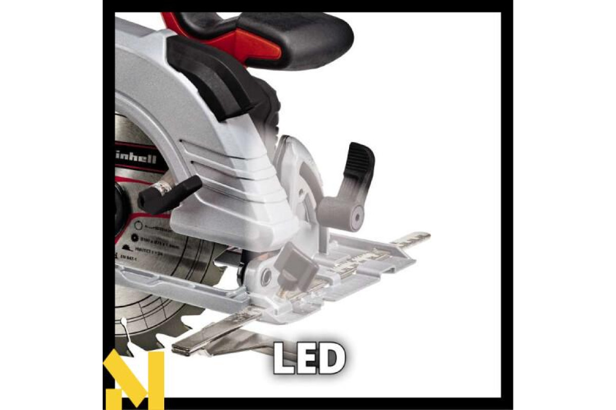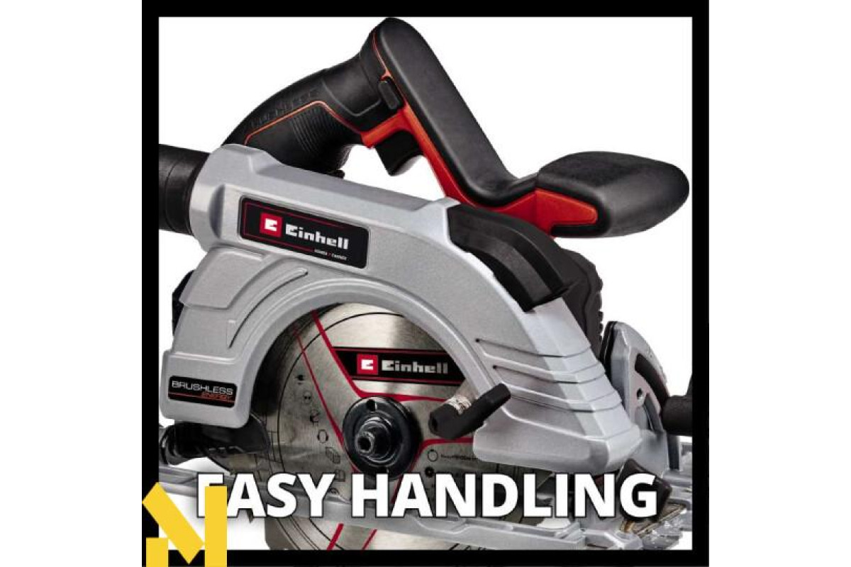 Нова акумуляторна циркулярна пила лінійки Power X-Change system Einhell TE-CS 18/190 Li-Solo серії Expert plus являє собою високоякісний, зручний універсальний інструмент і призначена для багатоцільового використання як любителями, так і професіоналами для здійснення поздовжніх, поперечних і похилих розпилів в масивній деревині, твердих деревно-волокнистих, деревостружкових, столярних плитах і пластмасі. Макс. глибина різання складає 65 мм завдяки пильному диску Ø190 мм (при 90° або 45 мм при 45°). Безщітковий двигун забезпечує більшу потужність і тривалий час роботи. Велика зручна ергономічна рукоятка з м'якою накладкою забезпечує хорошу фіксацію інструменту в руках, створюючи додатковий комфорт, і разом з відкидається захисним кожухом роблять тривалу роботу з ручною циркулярною пилкою Einhell TE-CS 18/190 Li-Solo зручною і безпечною. Міцна алюмінієва підошва з чудовими легкими властивостями забезпечує чисту, точну і безперервну розпилювання. Для оптимального освітлення зони різання є яскрава Led підсвічування. Точні розрізи забезпечуються за рахунок вказівних маркерів точно вказують на лінії розрізу в 0° і 45° і ширину пропилу, а також наявність паралельного упору дозволяють зробити точне розпилювання вздовж лінії розмітки. Адаптер пиловидалення може бути використаний для підключення пилососа для очищення робочого місця під час роботи. Підошва ручної акумуляторної циркулярної пилки Einhell TE-CS 18/190 Li-Solo також підходить для використання з направляючою Einhell L700 яка дозволяє легко зробити точний розпил. Інструмент поставляється без акумулятора і зарядного пристрою, але він може бути приведений в дію за допомогою Power X-Change акумулятора.