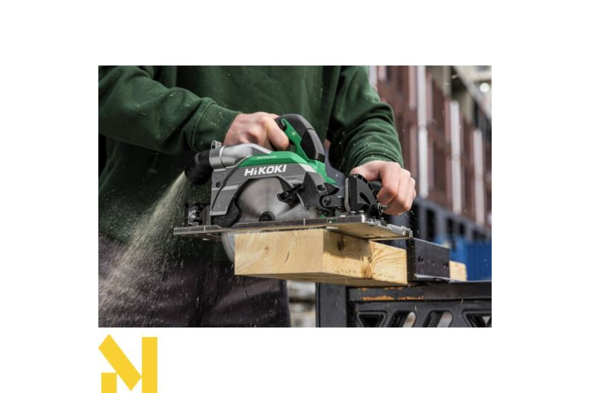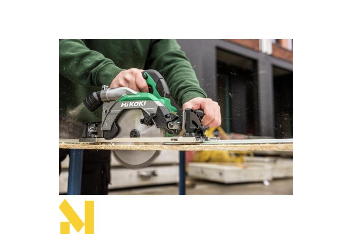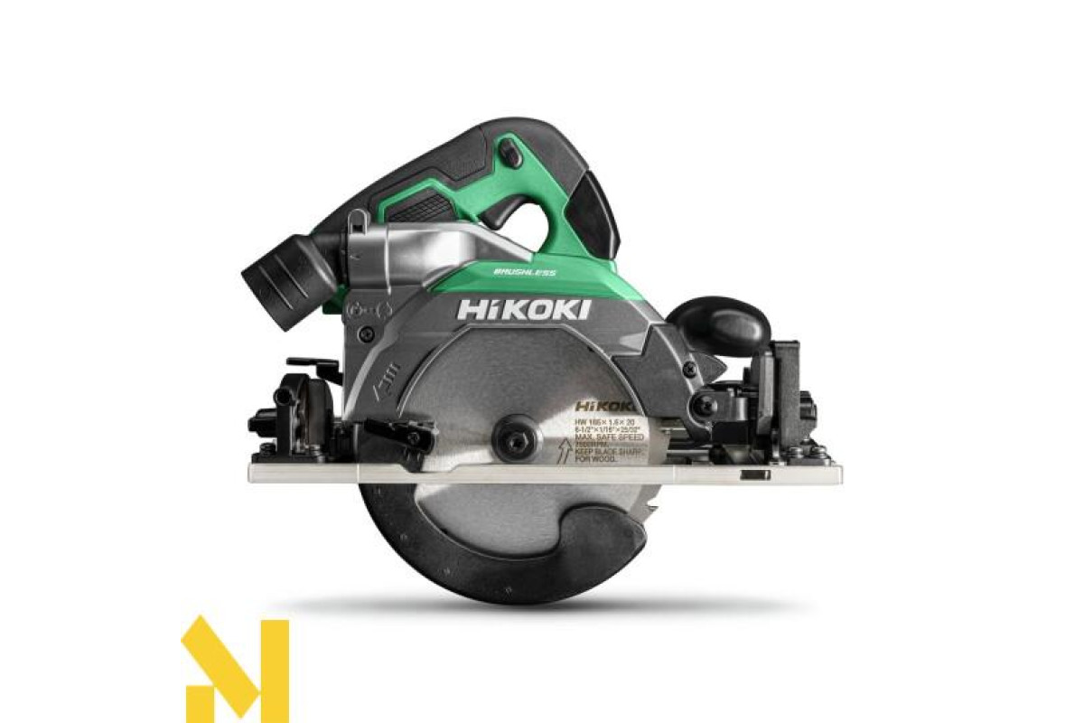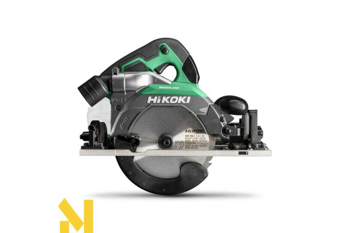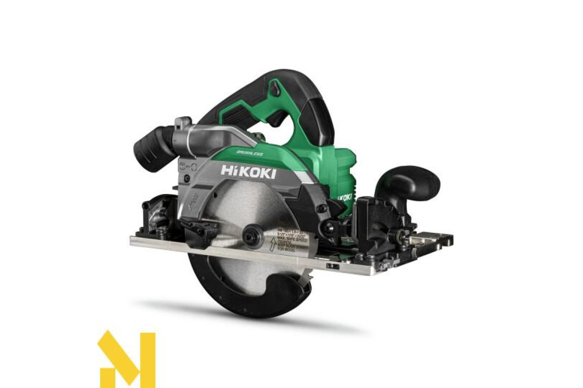 Ручна акумуляторна дискова пила HiKOKI C1806DUMW2Z 18 В, діаметром 165 мм, з глибиною різання 57 мм та розташуванням диска з лівого боку.