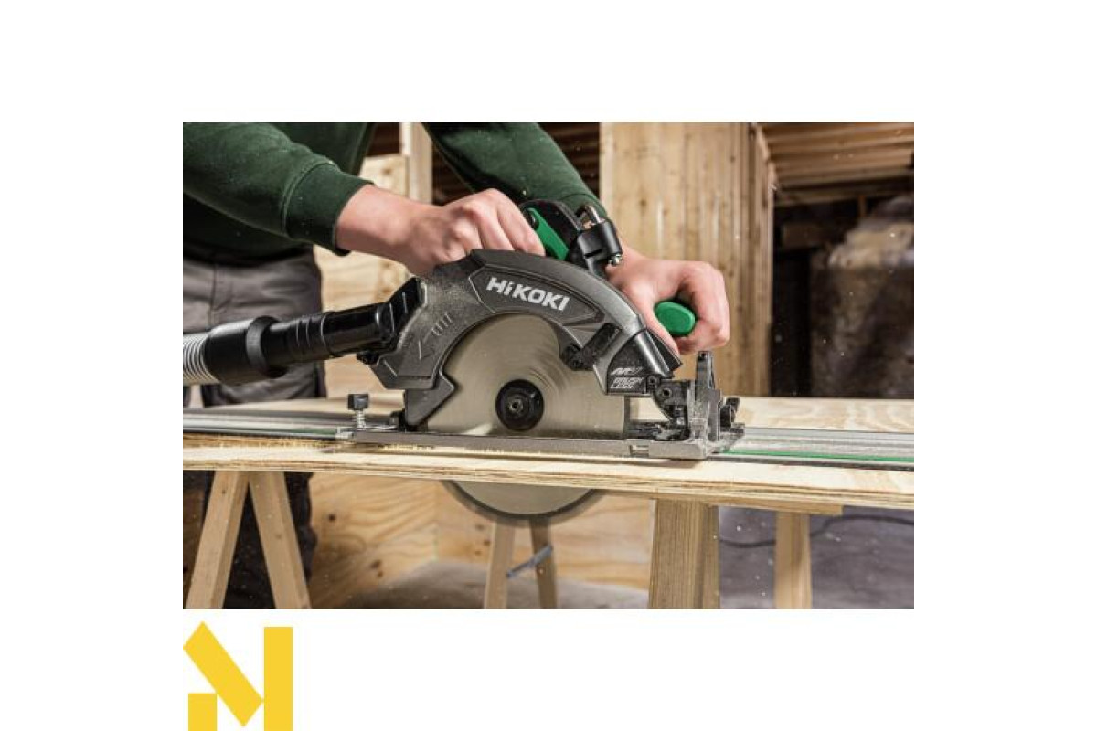 У комплекті адаптер направляючої рейки, сумісний з направляючими рейками марок HiKOKI, Makita, Milwaukee та Hilti.