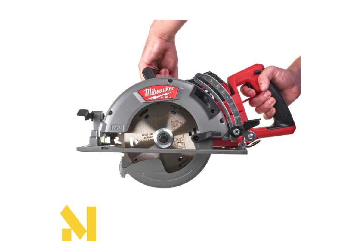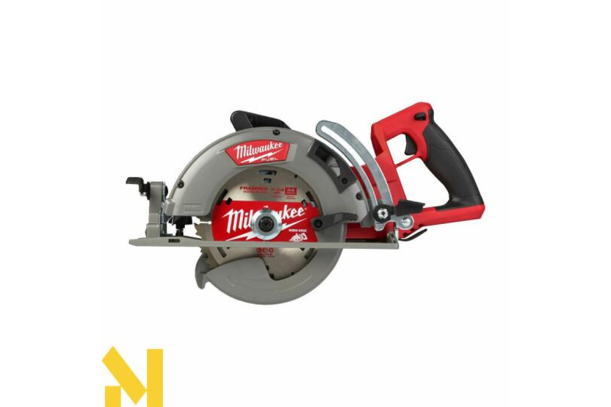 Пила із задньою рукояткою та диском, розташованим ліворуч для чудової видимості лінії різу