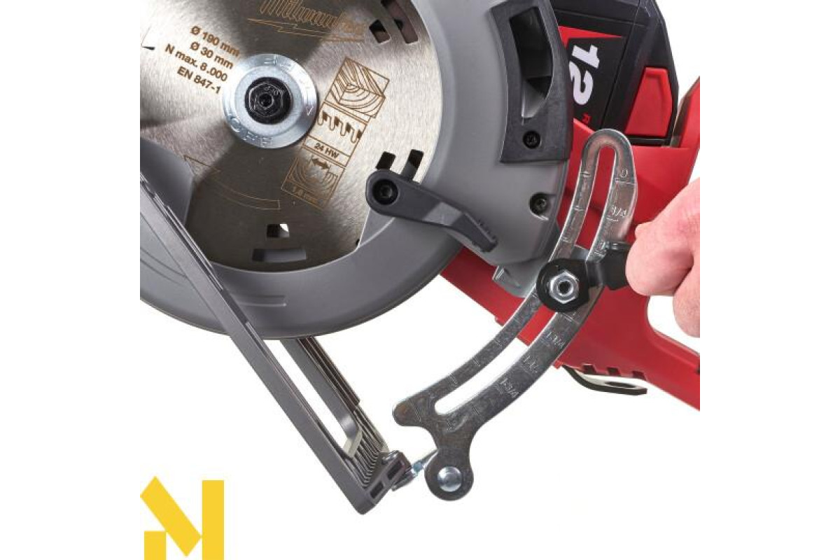 Диск діаметром 190 мм дає глибину різу 66 мм, дозволяючи різати стопку з трьох листів осп.