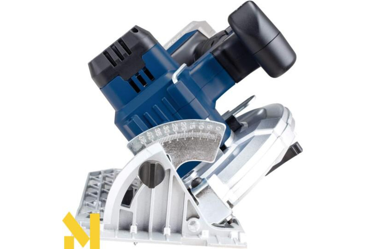 В комплекті йде режучий диск діаметром 165 мм з 24 зубцями, що дозволяє досягти чудової якості різання. Пила забезпечує глибину різання 55 мм при нахилі 90° та 35 мм при нахилі 45°. А з режимом різання під кутом до 45°, ви зможете легко створювати скоси та фаски на вашому матеріалі.