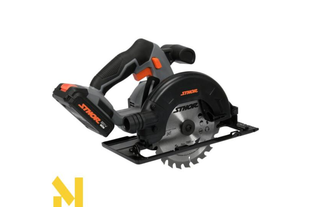 Пила працює від загальної для всіх пристроїв Sthor батареї 20 В.
