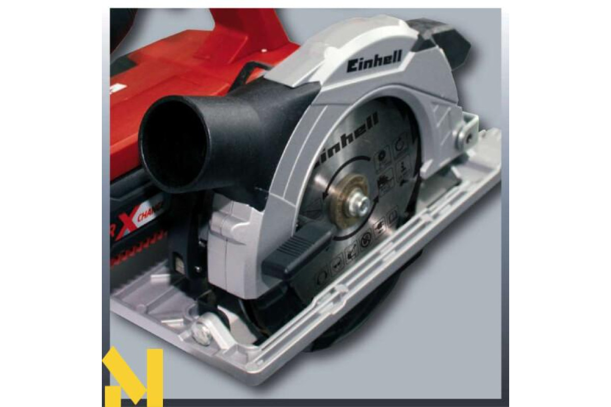 Високоякісні світлодіоди і адаптер для видалення пилу дають вам чітке уявлення про те, що ви робите, і тримає робочу зону в чистоті. Бездротова циркулярна пила TE-CS 18 Li-solo сумісна з направляючої Einhell, яка поставляється окремо.