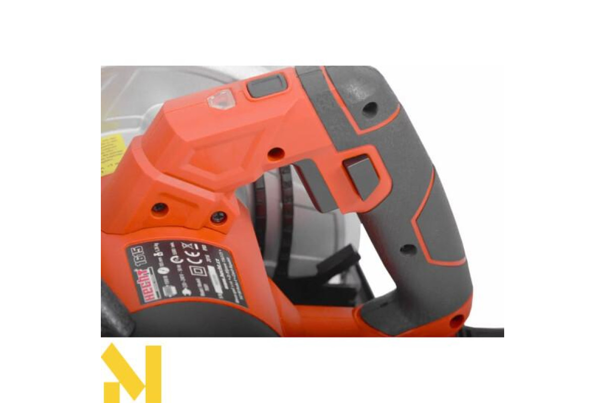 Електрична циркулярна пила HECHT 1615 потужністю 1500 Вт з індикатором лінії лазерного різання призначена для різання, різання, різання під кутом, поперечної і поздовжньої різання деревних і деревних матеріалів. Пристрій має плавне регулювання глибини різання (не більше 65 мм) і кут нахилу від 0 до 45 градусів. Він оснащений 24-зубчастим широкоформатного пильним диском діаметром 185 мм, який забезпечує швидкість 5500 об / хв.