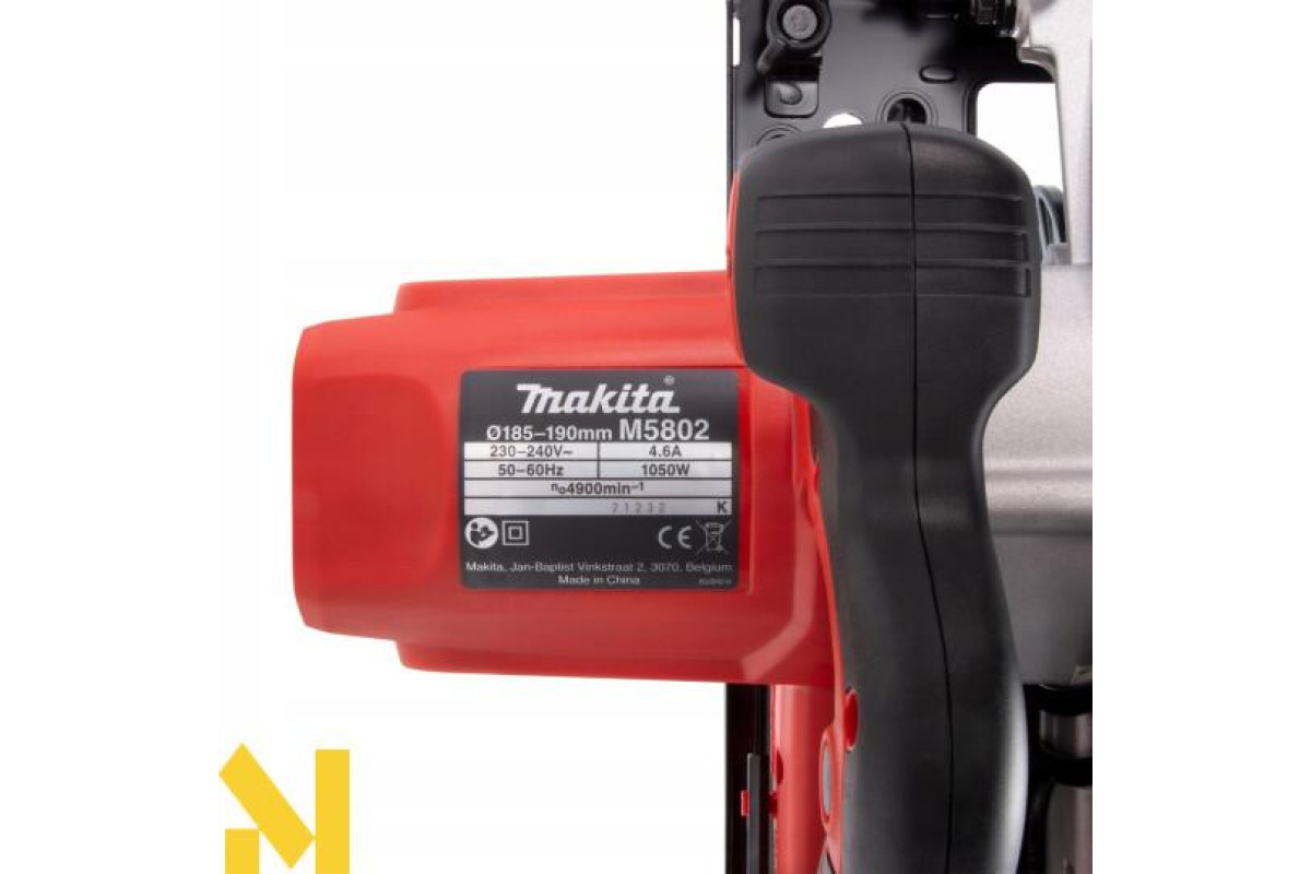 Дискова пилка Makita M5802 призначена для прямолінійного розпилу твердих матеріалів, в основному деревини. Завдяки досить тихій роботі і малої вібрації електроінструмент досить-таки зручний в експлуатації. Техніка оснащена двигуном потужністю 1050 Вт, який видає тільки 93 дБ шуму. Її довговічність гарантує наявність редуктора на кулькових підшипниках. Ця модель має розклинюючим ножем, який не дає зупинитися ріжучого елементу в оброблюваної поверхні. Також вона характеризується міцною збільшеною опорною плитою, яка дозволяє виконувати дуже точні роботи. До того ж циркулярка має систему регулювання глибини пропила. Слід зазначити, що передбачена можливість підключення пилососа. А додаткова ручка покращує зручність у використанні. Крім того, в комплект додається твердосплавний диск.