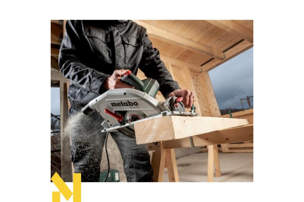 - Дискова пилка Metabo KS 85 FS обладнана блокуванням шпинделя, який дозволяє швидко міняти оснастку.
